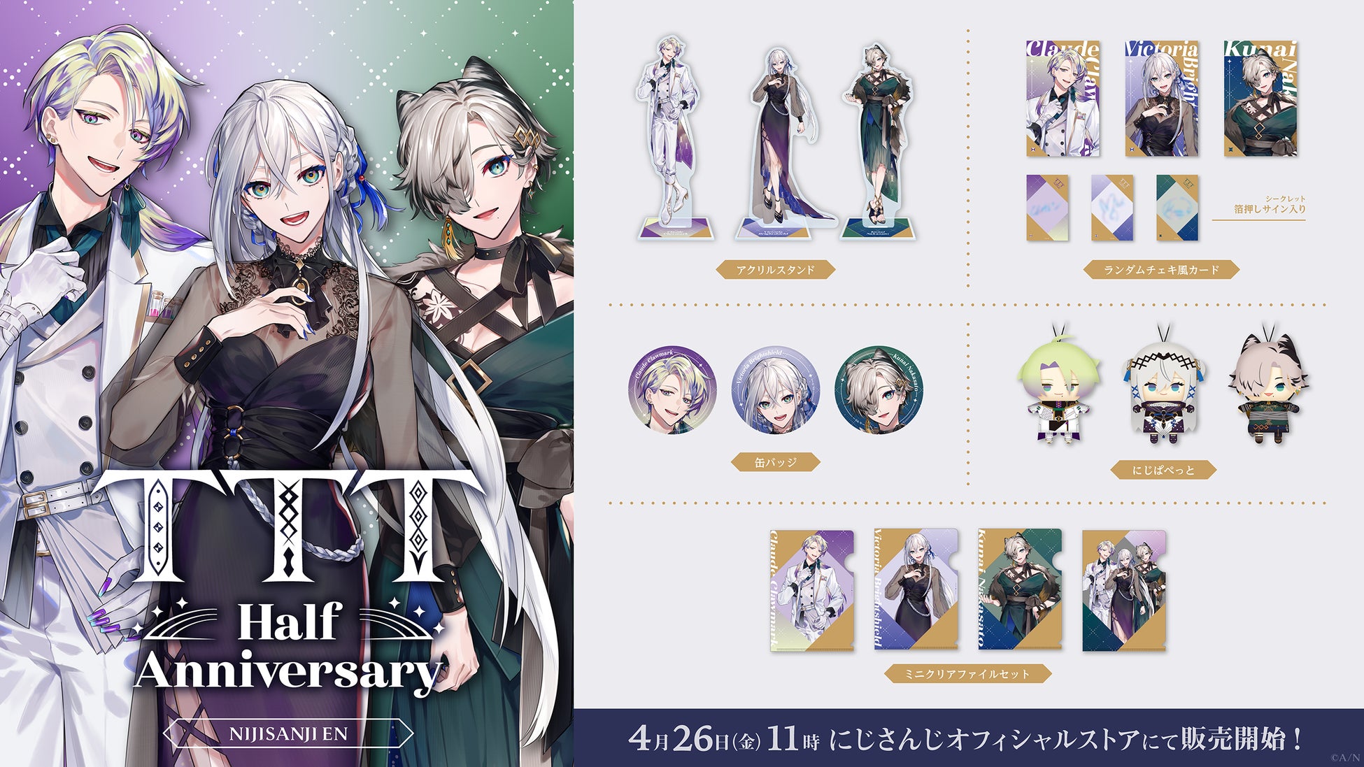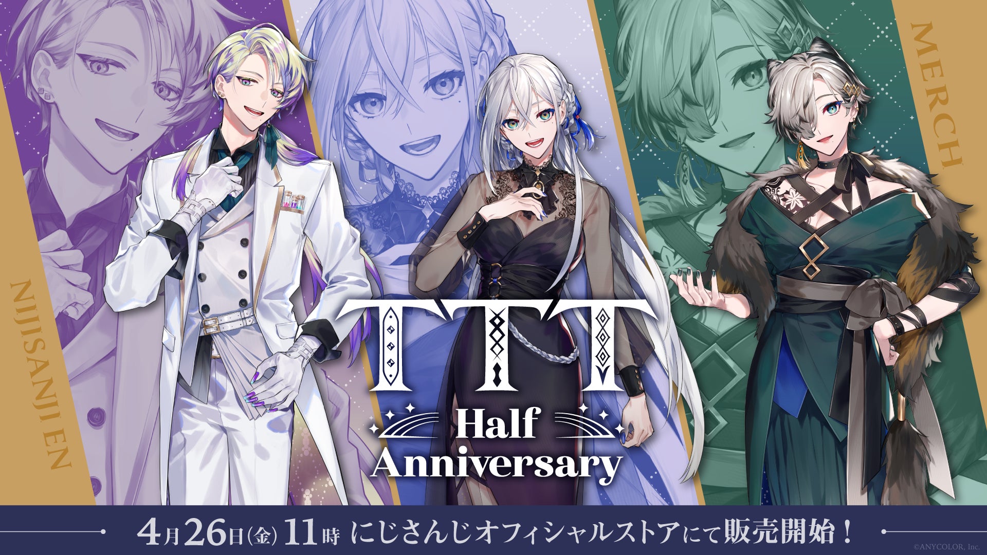 「TTT Half Anniversary」は、2024年4月26日(金)11時(JST)から、にじさんじオフィシャルストア(https://shop.nijisanji.jp/)とNIJISANJI EN Official Store(https://nijisanji-store.com/)にて販売を開始いたします。