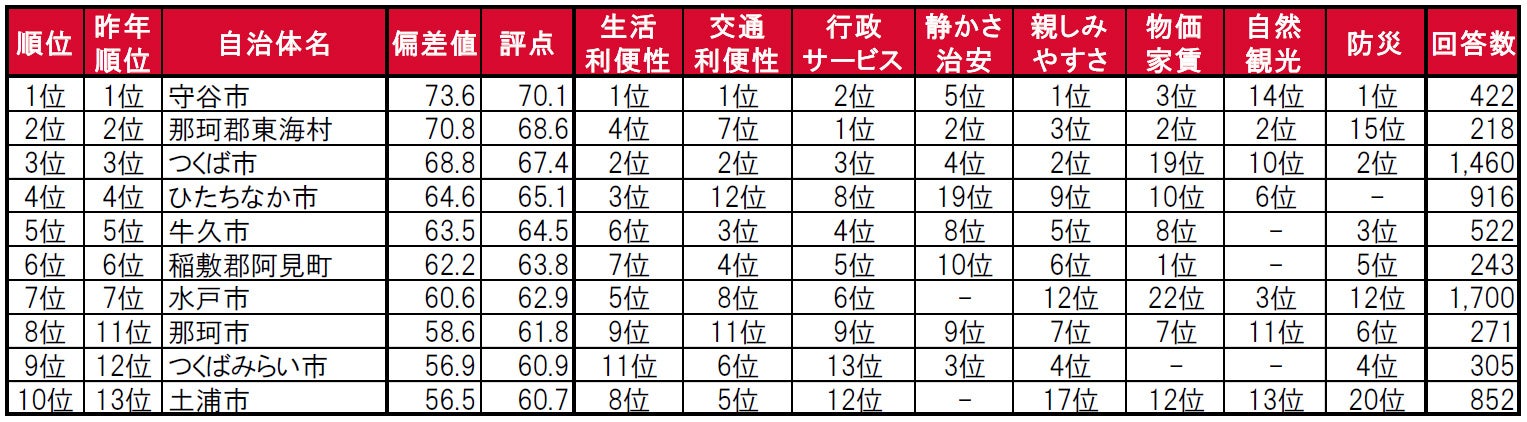 「いい部屋ネット 街の住みここちランキング2023<茨城県版>」 主なポイント