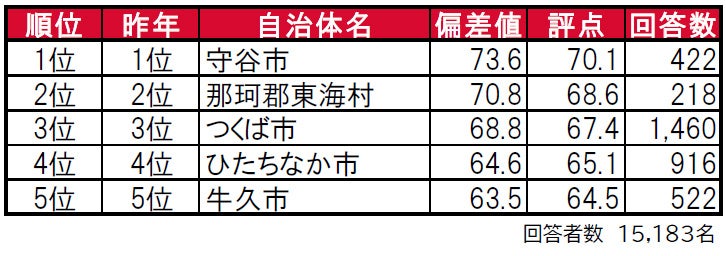 住みここち1位は5年連続で守谷市。トップ5の顔ぶれは4年連続で同じ結果に。