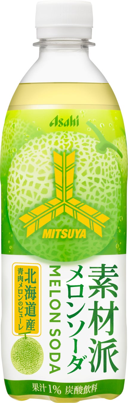 『三ツ矢素材派メロンソーダ』は、マスクメロンの果汁とエキス、北海道産青肉メロンのピューレを使用した炭酸飲料です。メロン素材を3種類使用し、メロンの清涼感ある甘みと爽やかな香りが特長です。従来の製法と比較し、熱をさらに抑えることで果実の味わいと香りをより引き立たせる「フルーツ引き立て製法」を採用することで「果実本来の味わい」が楽しめます。パッケージは淡い緑色をベースに「三ツ矢」の矢羽根とメロンのイラストを大きくあしらいました。「北海道産青肉メロンのピューレ」の文字を記載することで、素材へのこだわりが伝わるデザインとしました。