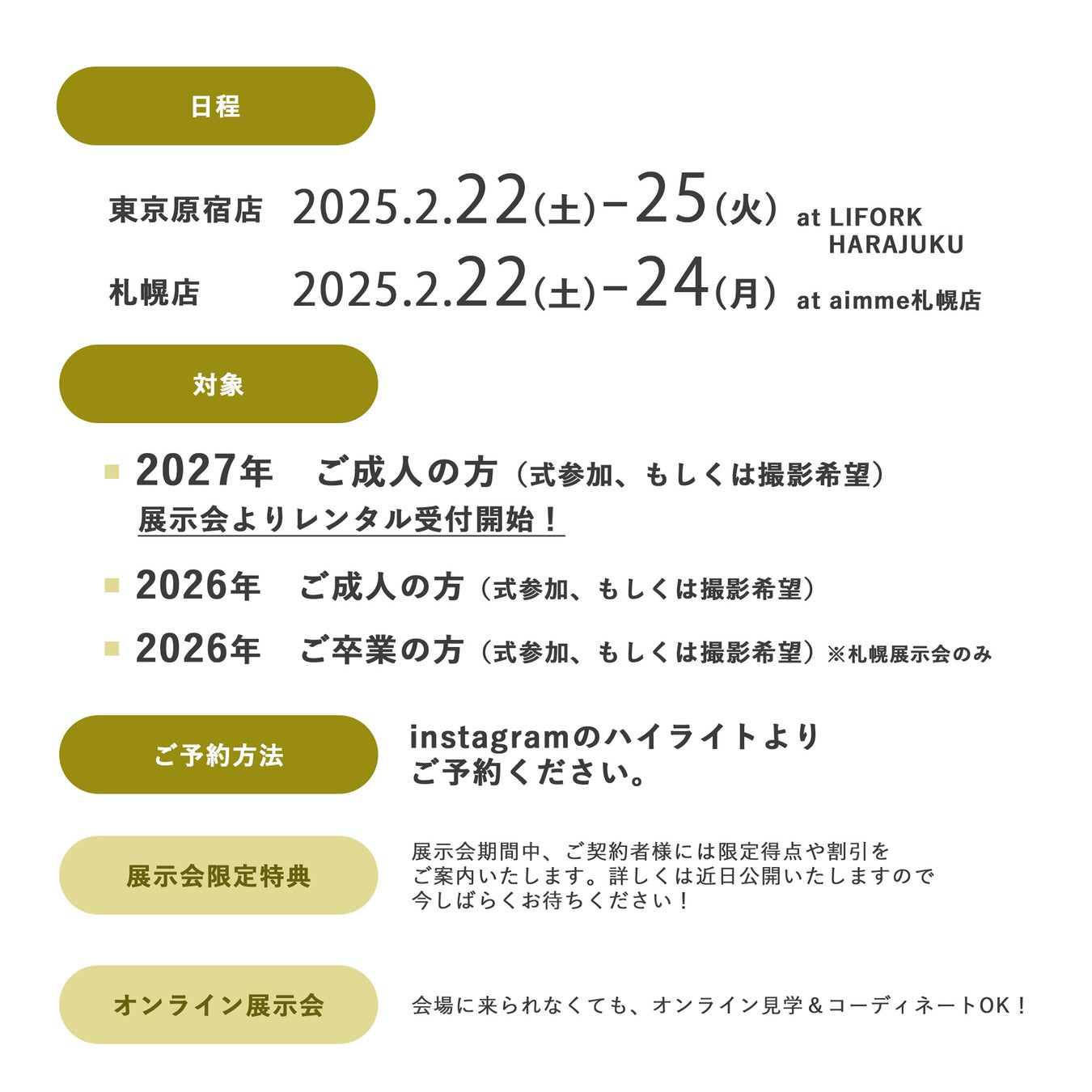 【aimme東京原宿店】毎年大好評!!2026,2027年ご成人のお嬢様に向け、年に一度の大イベント、振袖展示会の開催が決定!