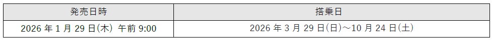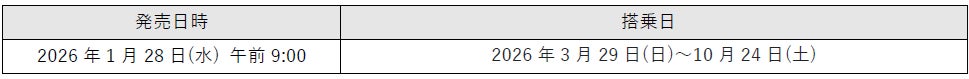 【2026年3月29日(日)~10月24日(土)ご搭乗分】