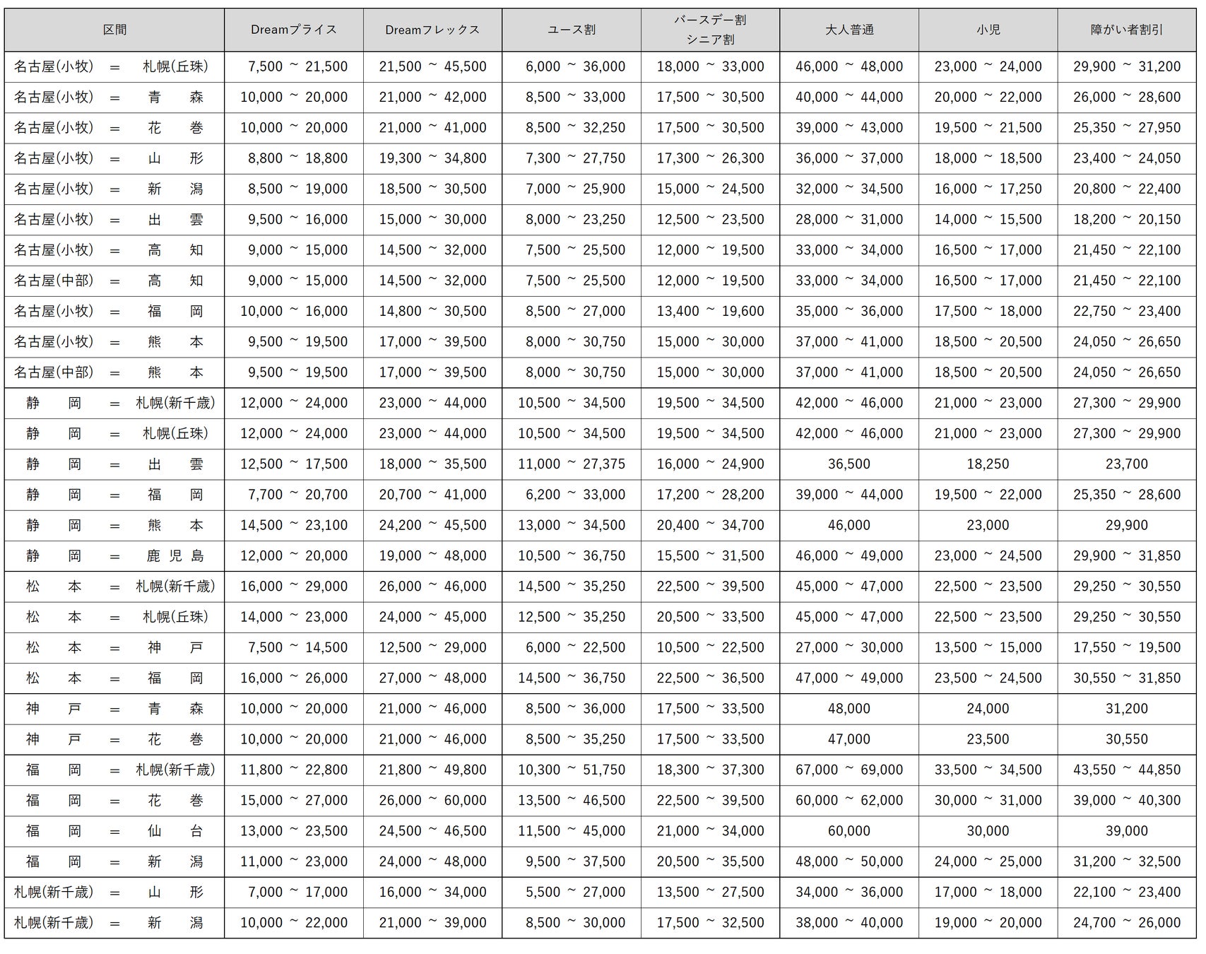 ※各種運賃詳細、取消手数料、適用条件等につきましては、FDA公式ホームページをご確認ください