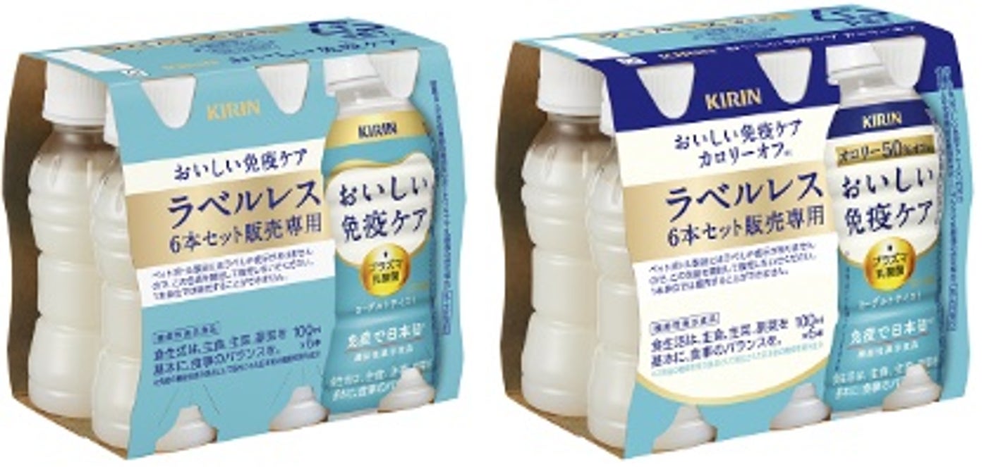 ・「キリン おいしい免疫ケア」「キリン おいしい免疫ケア カロリーオフ」100mlペットボトルのラベルレスを6本パックにしました。