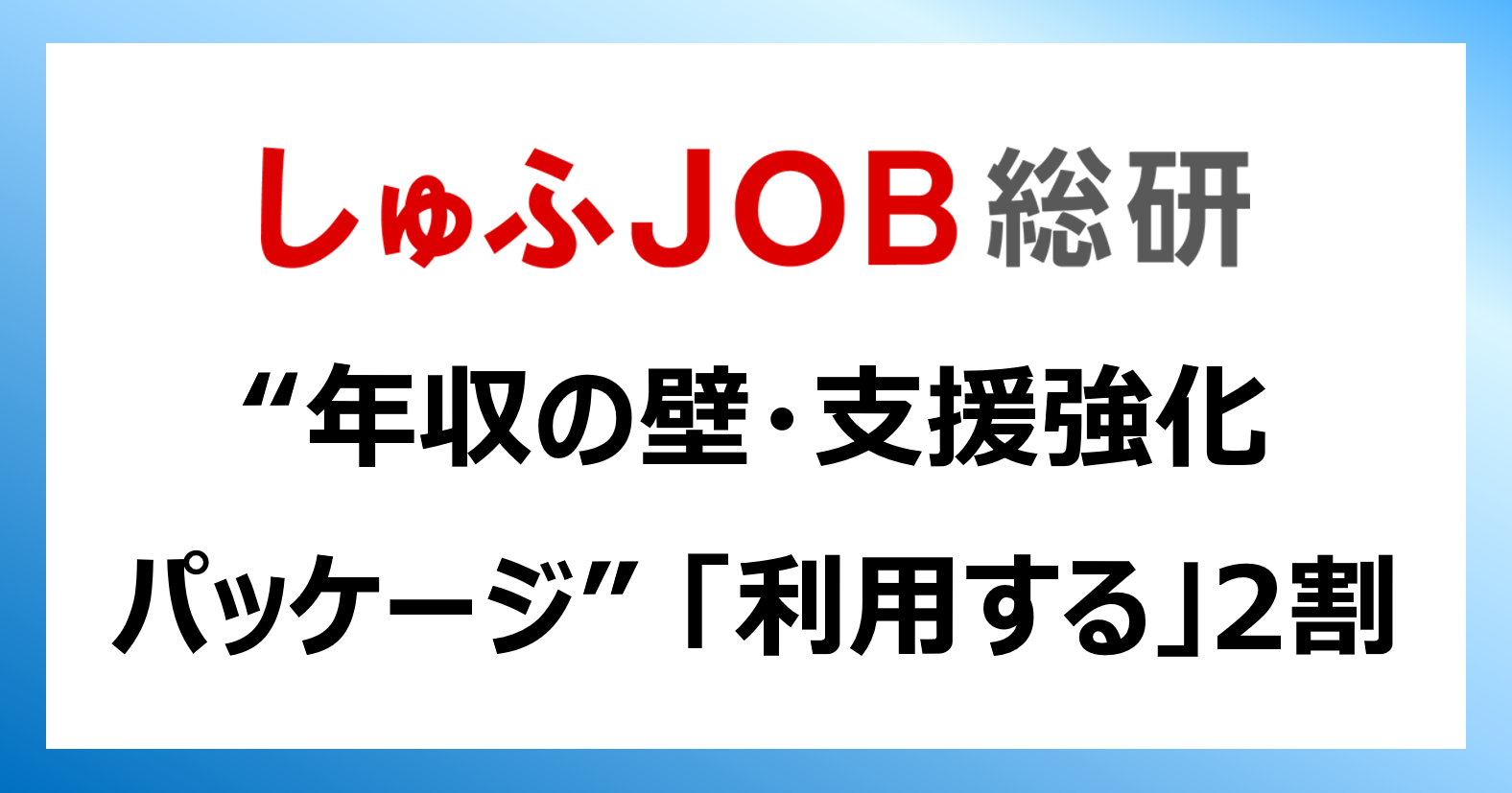 “年収の壁・支援強化パッケージ”を主婦・主夫層は使うのか?「利用する」20.4%