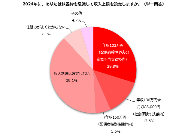 2.2024年の収入上限「年収103万円」29.8%、「収入制限なし」39.1%
