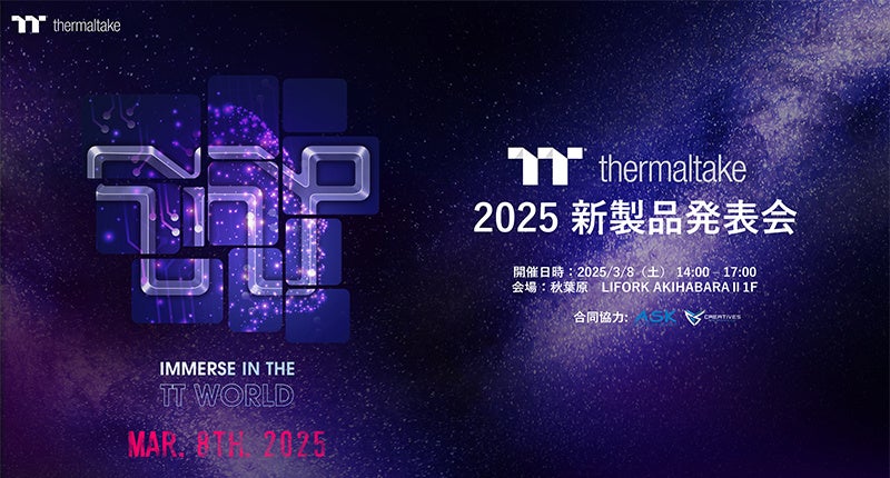 弊社取り扱いメーカーであるThermaltake社は、2025年3月8日(土)、東京・LIFORK AKIHABARA IIにおいて、注目の新製品をご紹介するスペシャルイベント「2025 Thermaltake新製品発表会」を開催いたします。