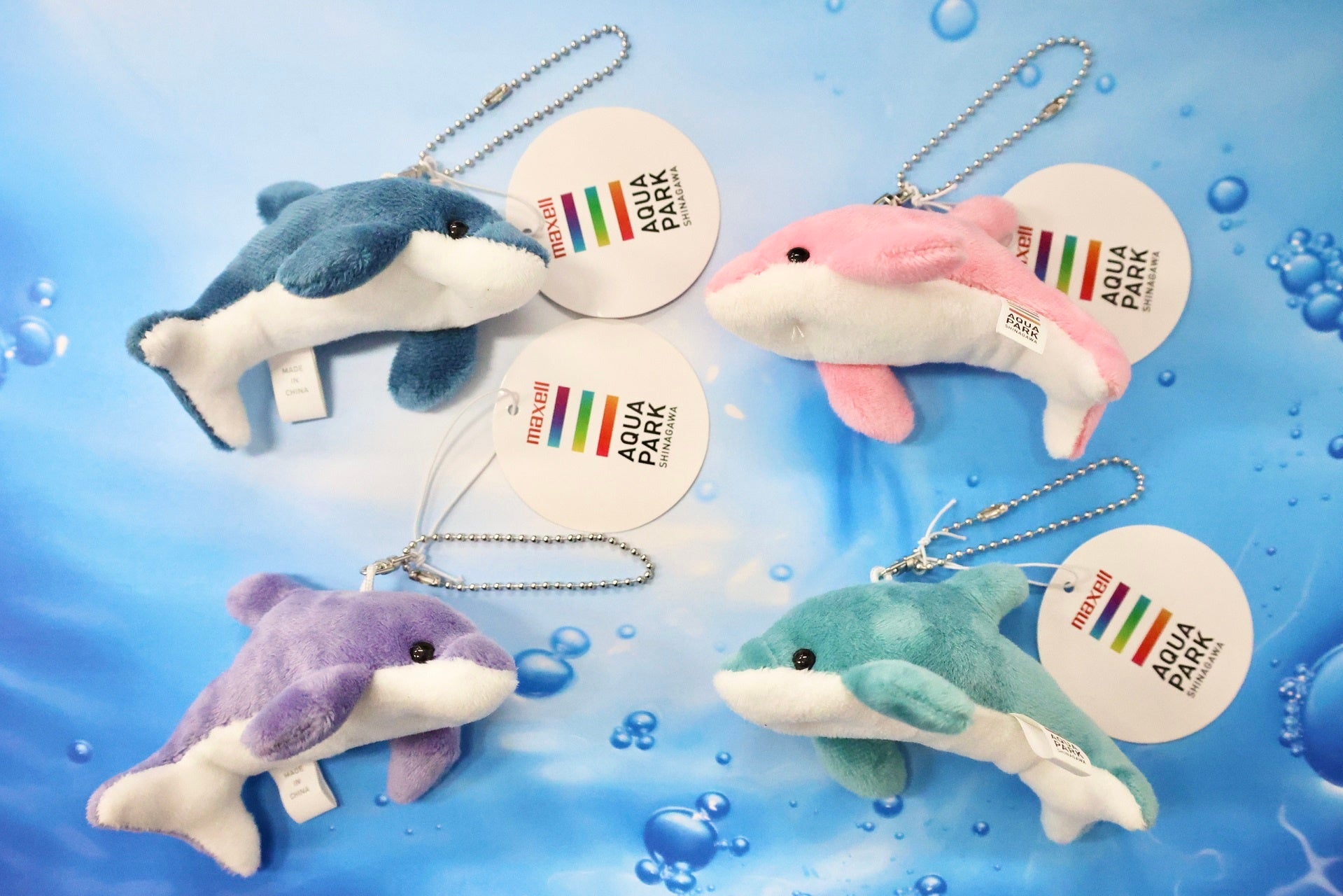 イルカがモチーフになったぬいぐるみキーホルダー。4色展開なので、ご友人と色違いで持ち歩くのもオススメです。