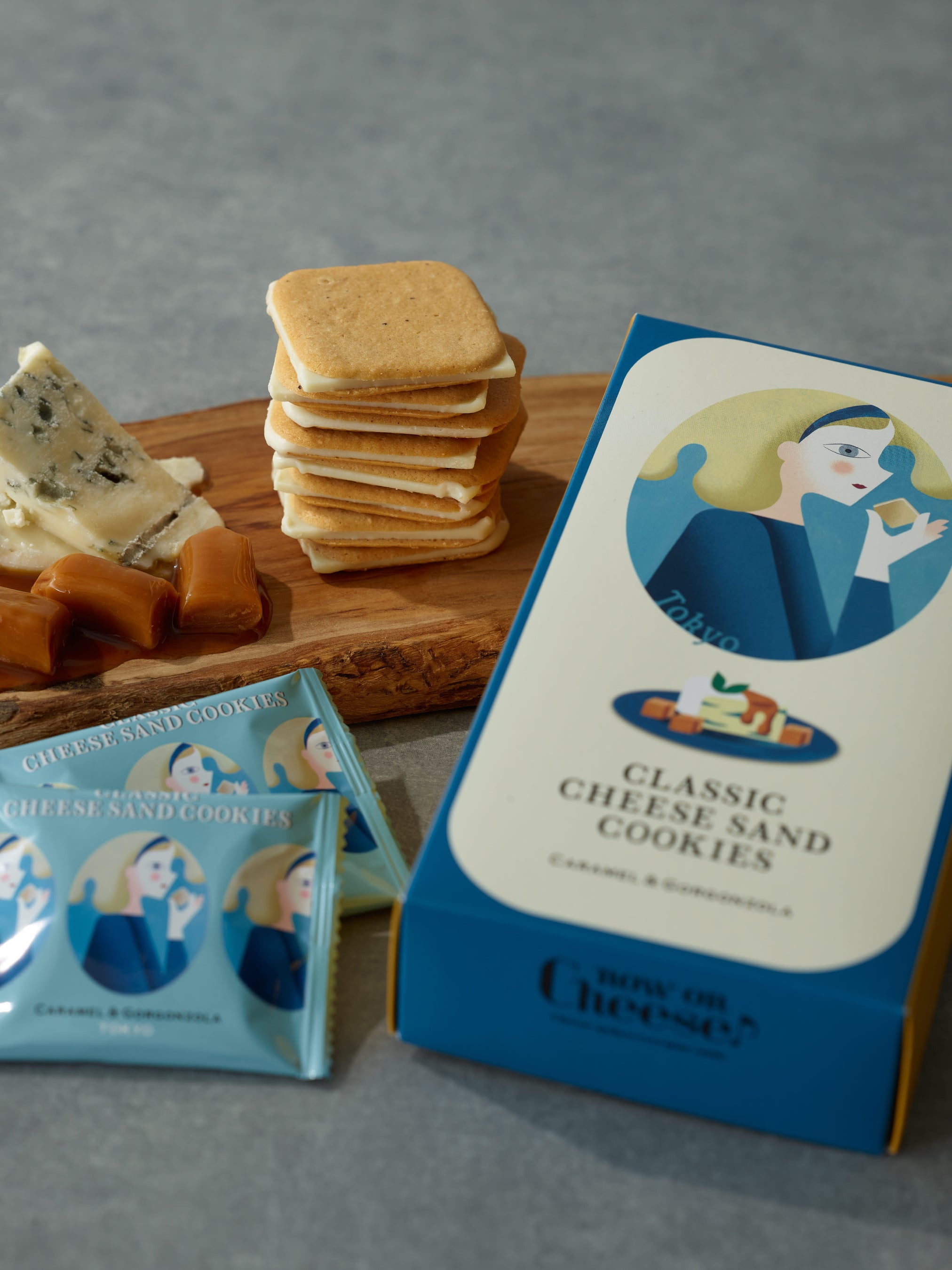 ゴルゴンゾーラのチョコレートをカラメルラングドシャでサンドしたチーズのコクが楽しめる「カラメル&ゴルゴンゾーラ」、