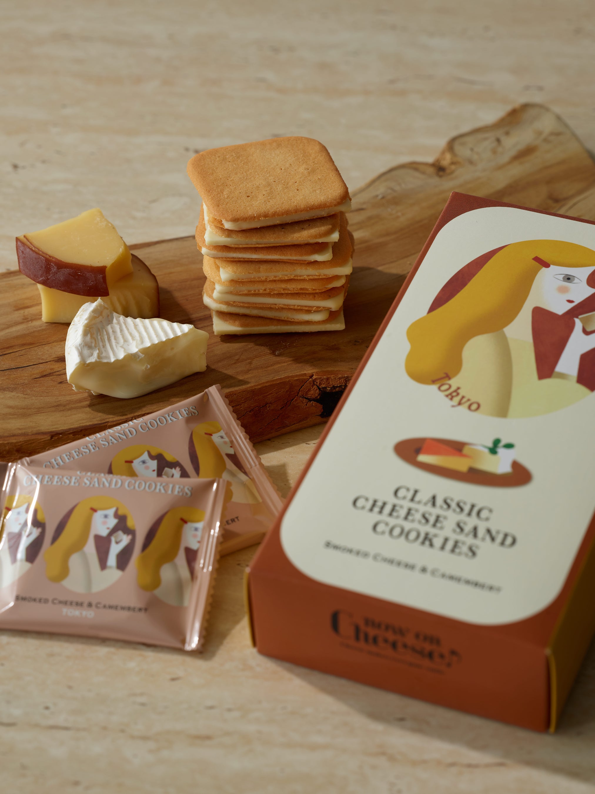 カマンベールチーズのチョコレートをスモークチーズラングドシャでサンドした、塩味を楽しむ「スモークチーズ&カマンベール」、2種類の味をお楽しみください。