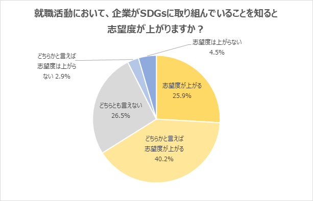 半数以上が、就職活動でSDGsを意識。7割弱の学生が「企業がSDGsに取り組んでいることを知ると志望度が上がる」と回答。「仕事を通して、社会に貢献したい」の声/2024年卒対象アンケート