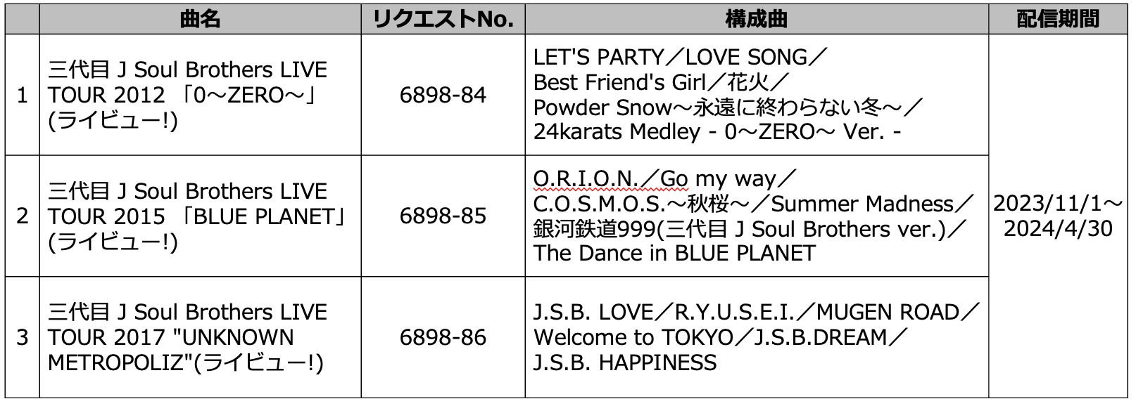 三代目 J SOUL BROTHERSが「ライビュー!」に登場!3公演のライブ映像をカラオケで楽しもう!