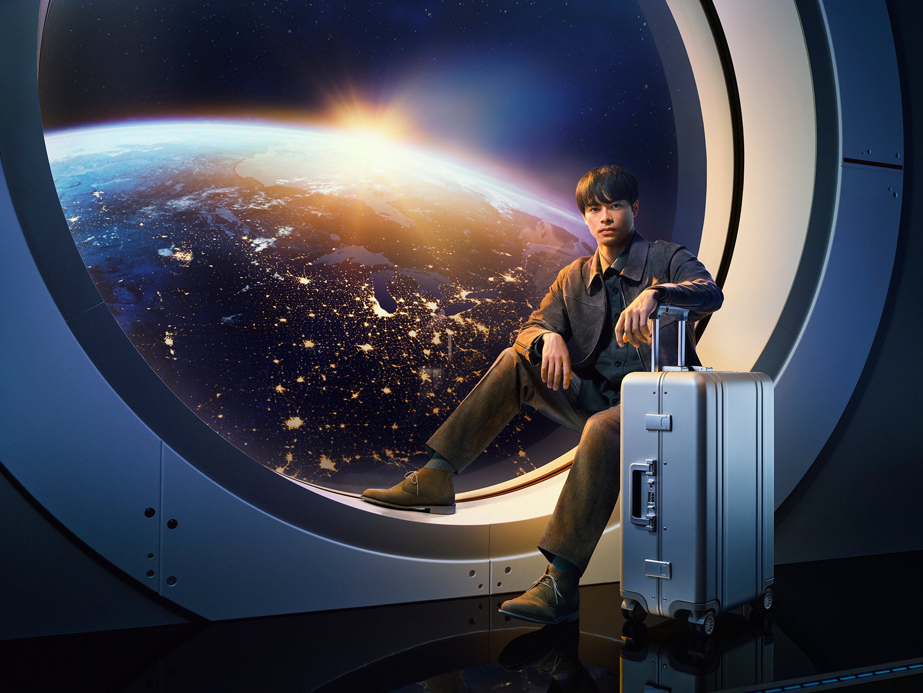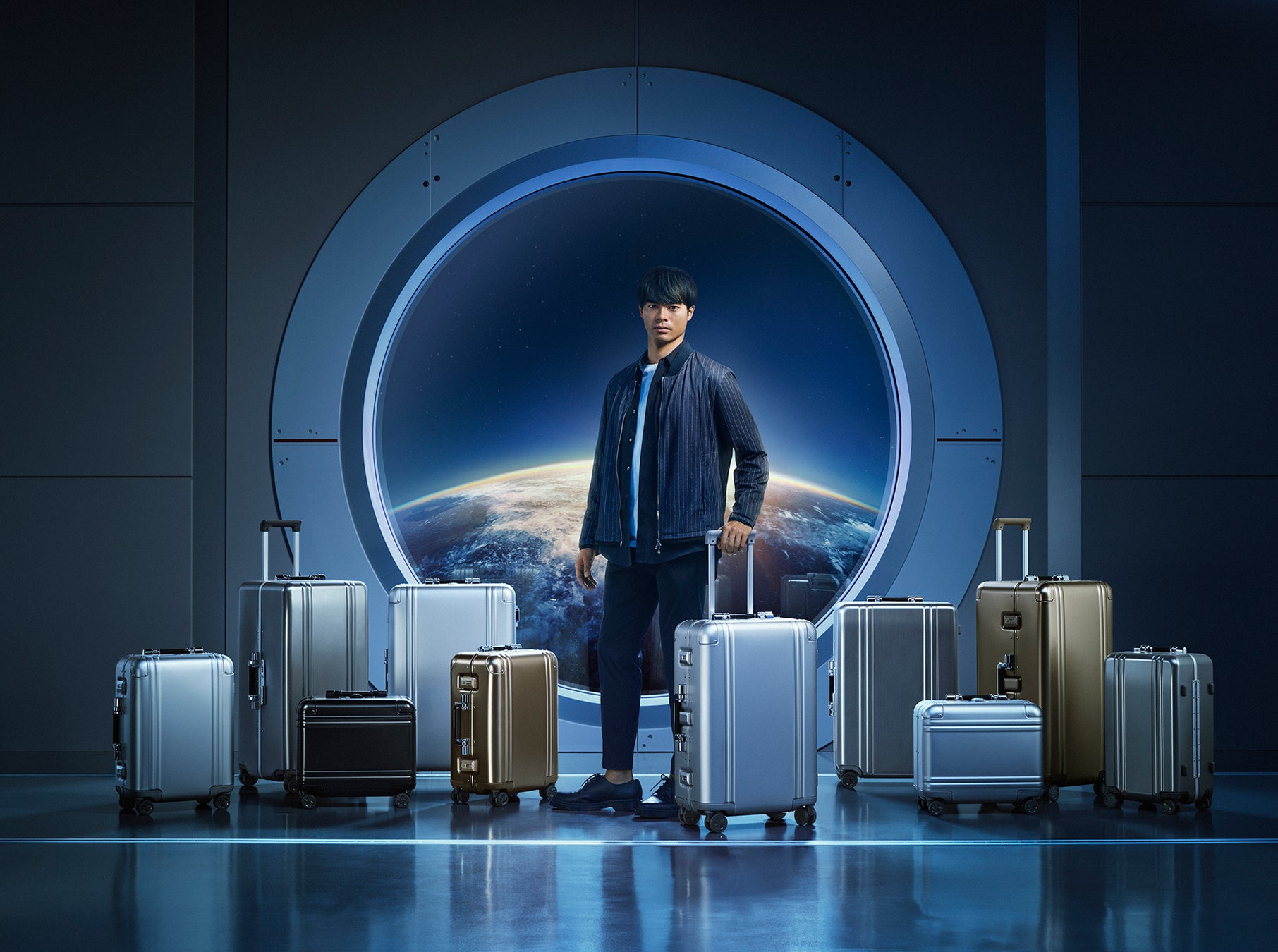 その姿勢を体現する存在として、アンバサダー・三笘選手が最新のトラベルコレクションとともに登場。月でのトレーニングを終え、地球へ帰還するその瞬間。窓越しに広がる地球を見据え、未来へ向かう姿を表現しています。