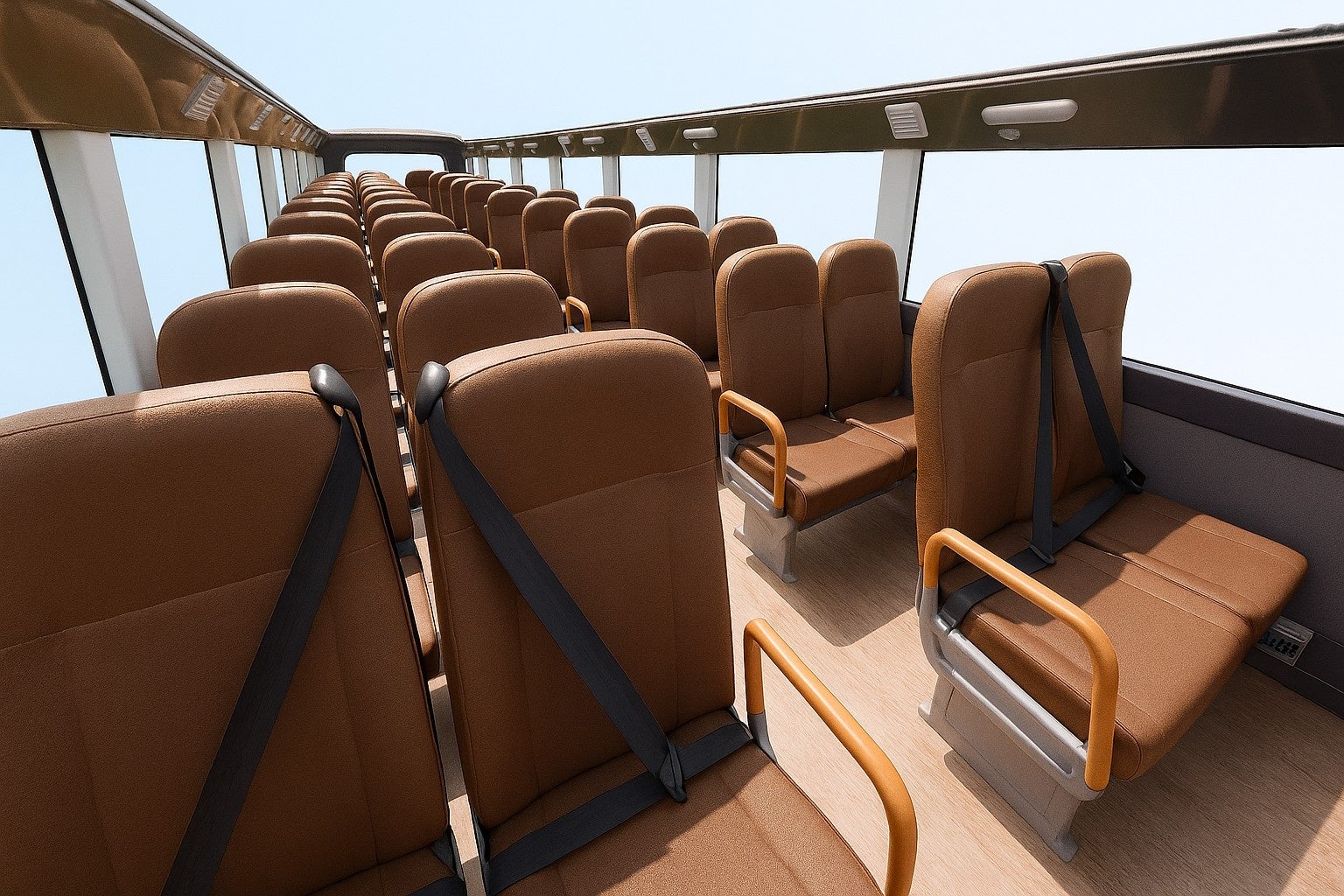 座席シートはイエローを基調とした外観に映える茶色を採用。外観のボディカラーと合わせてひまわりの色合いを表現しました。