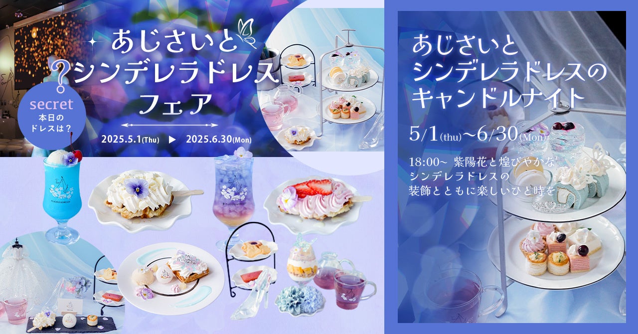 「PLACOLE&DRESSY」プロデュースカフェ DRESSY CAFEで、あじさいとシンデレラドレスフェアを開催。看板メニューのお花のアフタヌーンティーはあじさいの色味と味も堪能できるあじさいゼリーパフェをはじめ、中のジャムが隠し味のオリジナルジュレマカロンを使用したロマンティックなスイーツが新たに登場。推し活に大人気のプチアフタヌーンティーには可愛らしい新作フラワークロッフルが登場予定。名古屋店では毎日夜限定イベントとして、あじさいとシンデレラドレスのキャンドルナイトを開催。ナイトだけの幻想的な空間で大切な人と素敵な時間をお楽しみください。