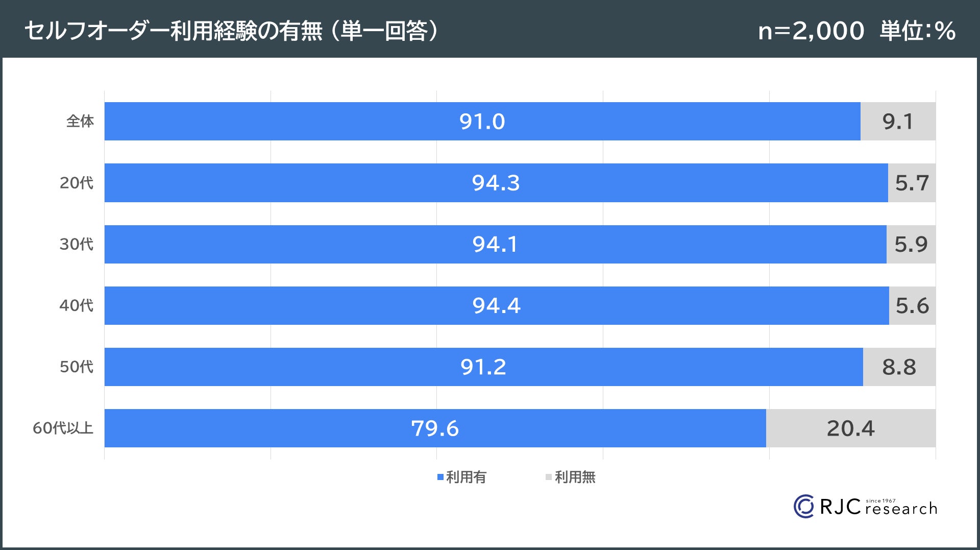 RJCリサーチ、全国20歳~69歳男女2,000名を対象にセルフオーダーに関する利用実態調査を実施