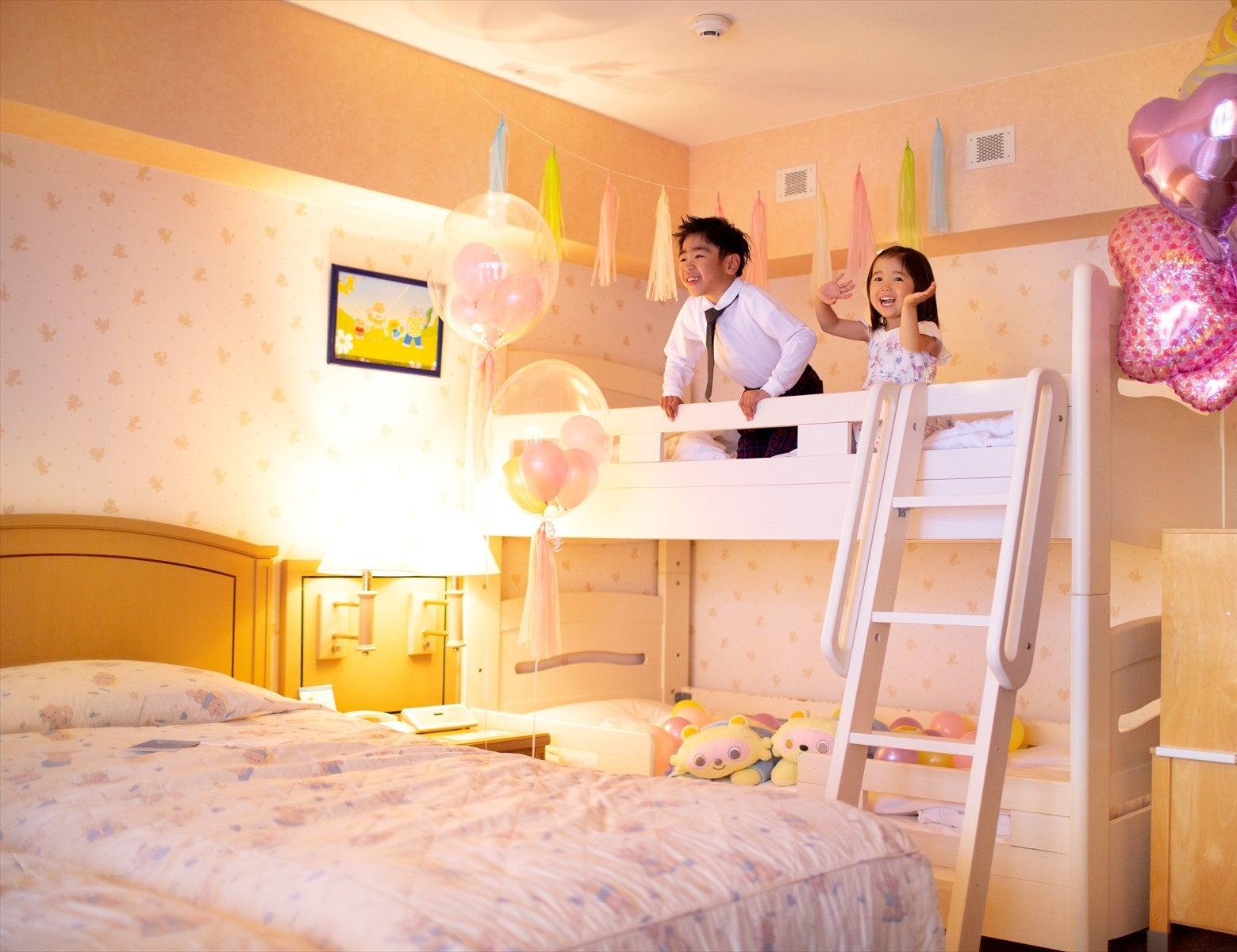 二段ベッドやアメニティ、小学生には嬉しいお楽しみバッグなど、家族に嬉しい客室です。4名以上から利用できるコネクティングタイプは、隣の部屋と行き来が自由で便利で、大人数のご家族や三世代旅行におすすめです。