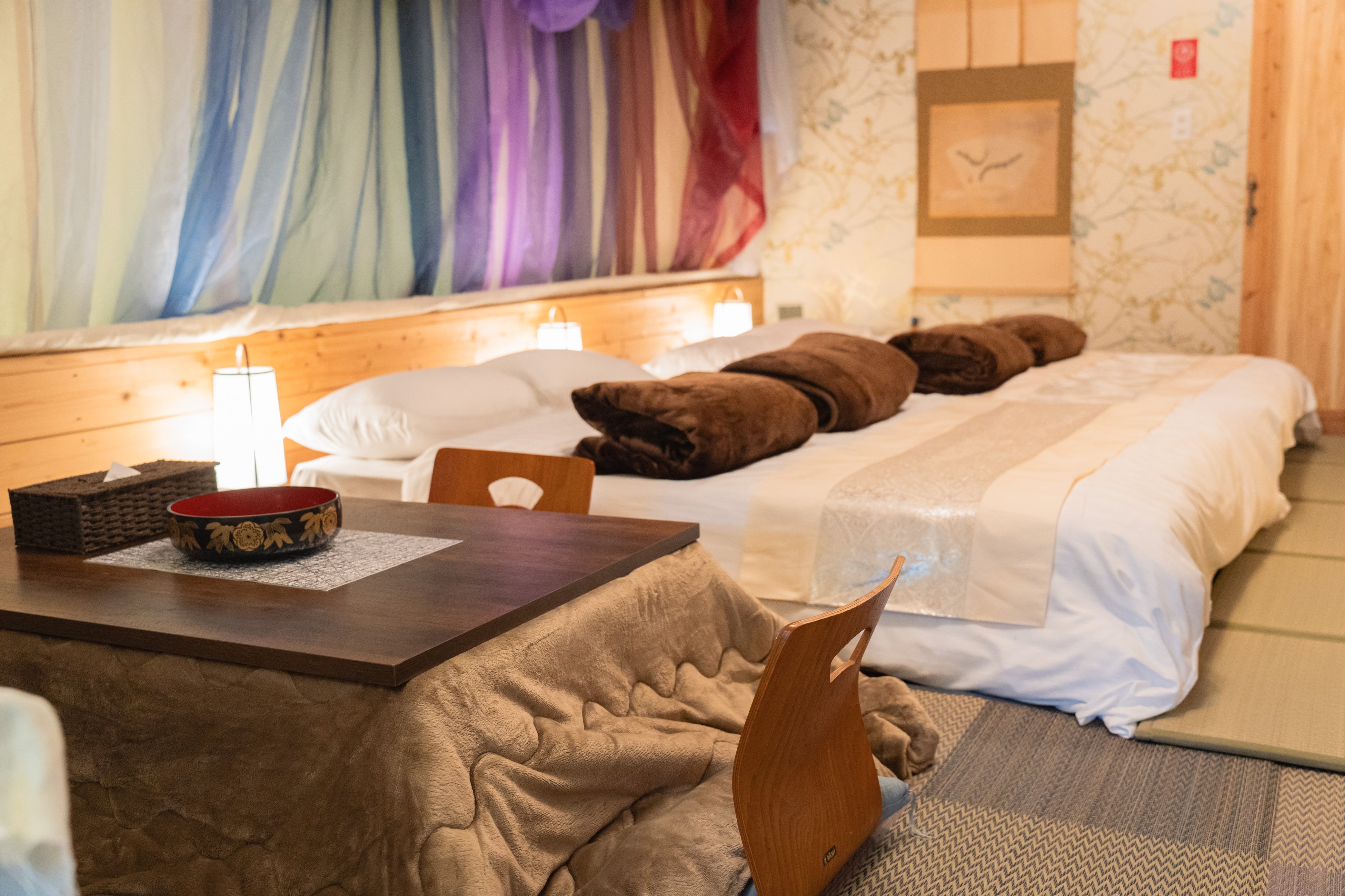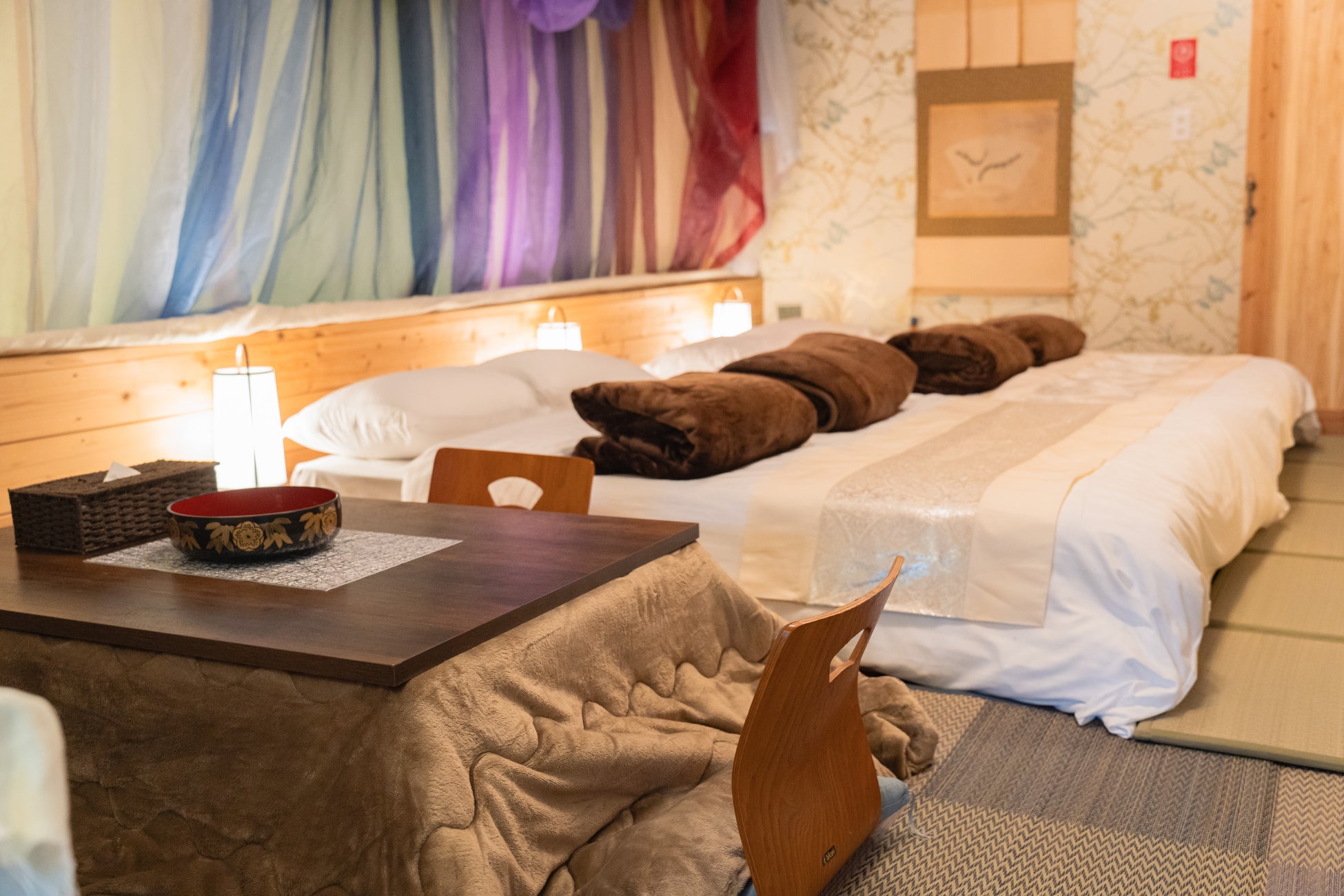 畳の香りが落ち着く和モダン、森の彩りを閉じ込めたような癒し空間など、テントごとに内装テーマが異なり、同じ滞在でも“選ぶ楽しさ”があります。