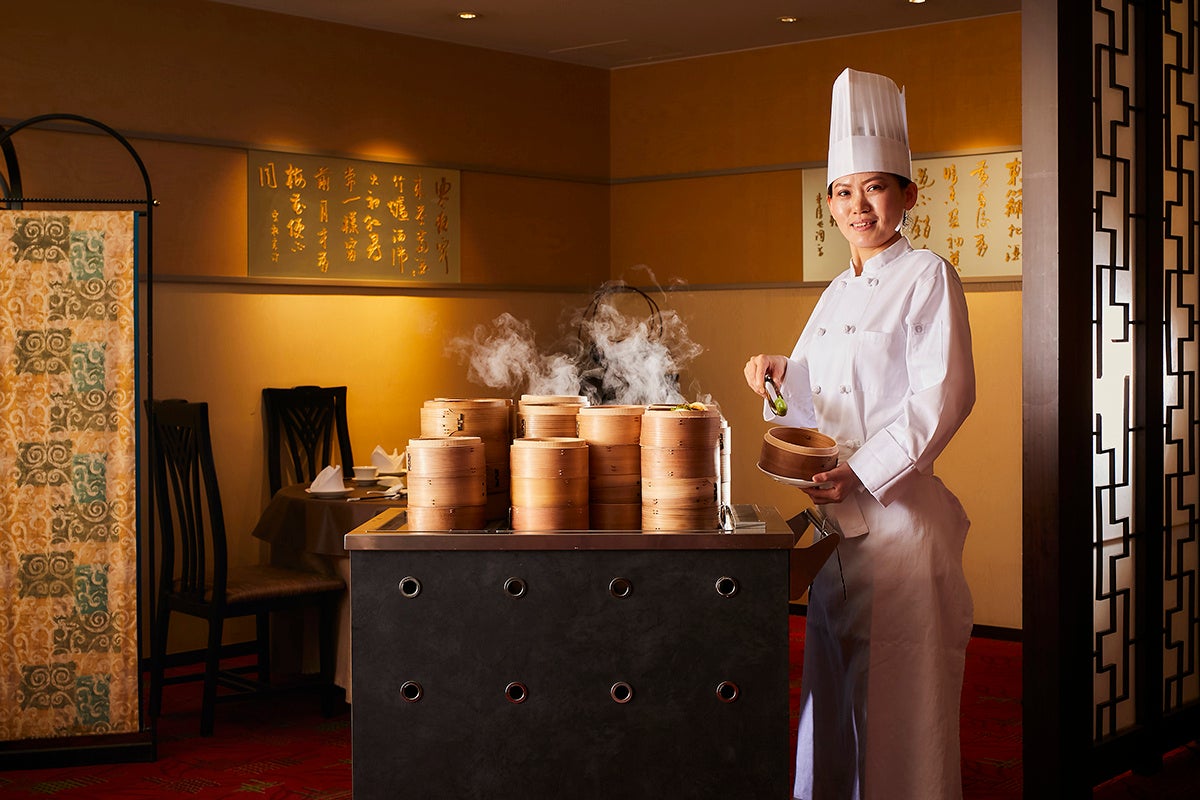 ランチでは定評ある飲茶バイキングをぜひお楽しみください。ディナーでは心が温まるシェフ特製薬膳スープをはじめ、新鮮な旬の食材や高級食材を使用したメニューをご用意しております。4つの個室はお祝い事やビジネスでの会食にもご利用いただけます。