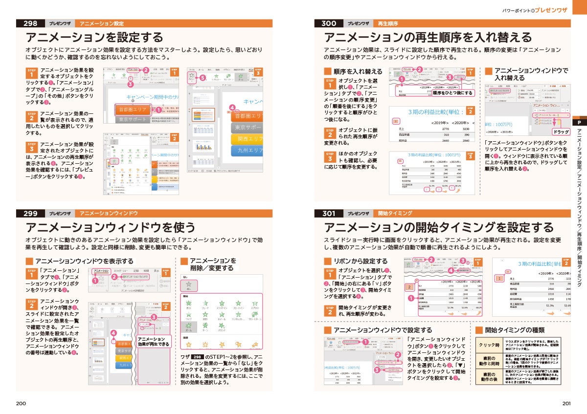ひとつひとつのワザの手順や効果を画像付きで解説している点も本書の特徴。すべてのワザがシチュエーション別で分類されており、必要なときに必要なワザを調べるといった使い方も可能です。さらに、巻末にはすべてのワザを逆引き方式で探せるインデックスも備えており、困ったときにすぐ解決方法を調べることができます。
