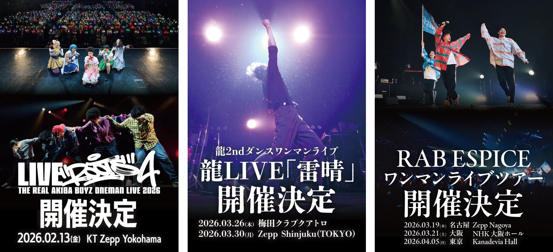 2ヶ月連続放送 「REAL AKIBA BOYZ メンバー単独公演 放送スペシャル」第2弾『絶闘 龍単独公演&アフタートーク』2026年1月27日よる9時~TV初放送!