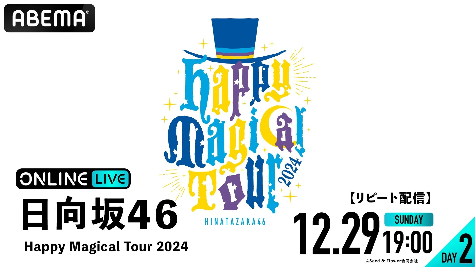新しい未来のテレビ「ABEMA(アベマ)」は、「ABEMA PPV(アベマ ペイパービュー)」にて、人気アイドルグループ・日向坂46の全国ツアー『日向坂46 Happy Magical Tour 2024』を、2024年12月25日(水)18時と、12月26日(木)18時より、それぞれ生配信することを決定いたしました。また、本配信の視聴チケットを12月21日(土)12時より販売開始いたします。