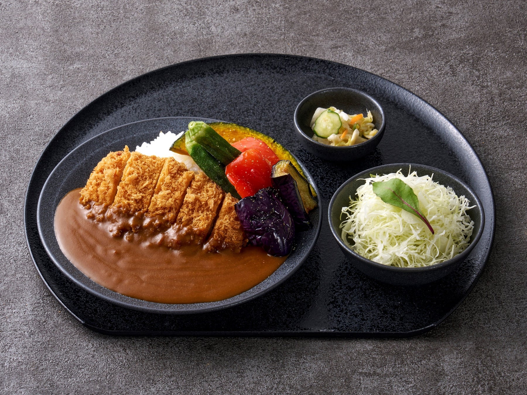 彩り豊かなオクラ・赤パプリカ・ナス・かぼちゃを素揚げし、まい泉オリジナルスパイスソルトをひと振り。まい泉自慢の「箸で切れるやわらかなとんかつ」のかつカレーと夏野菜を一緒に楽しめる限定メニューをご堪能ください。