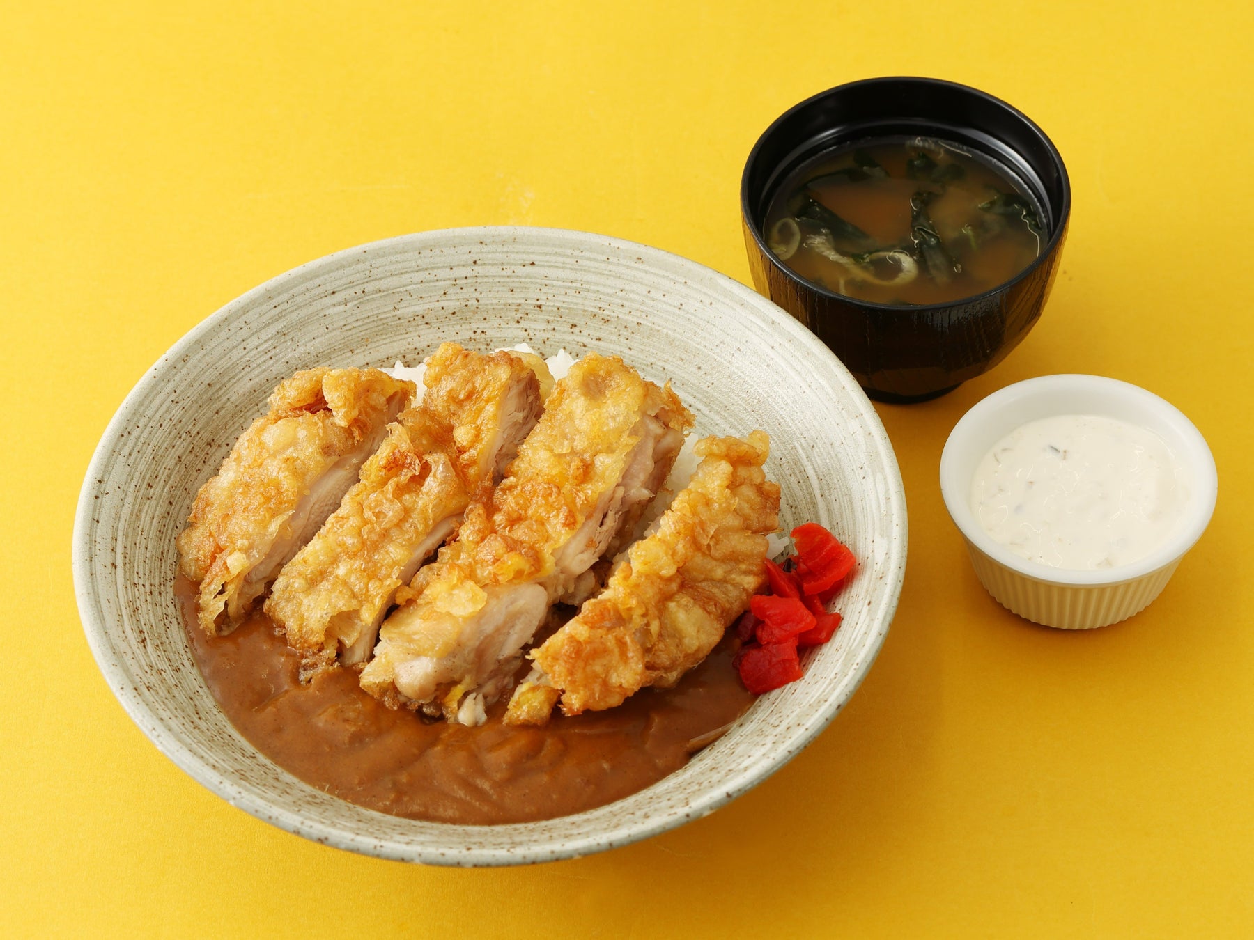 宮崎県のご当地グルメである「チキン南蛮」をカレーと一緒に楽しめる、贅沢かつ満足感たっぷりな一皿。ジューシーな鶏もも肉、タルタルソースも食欲をそそります。