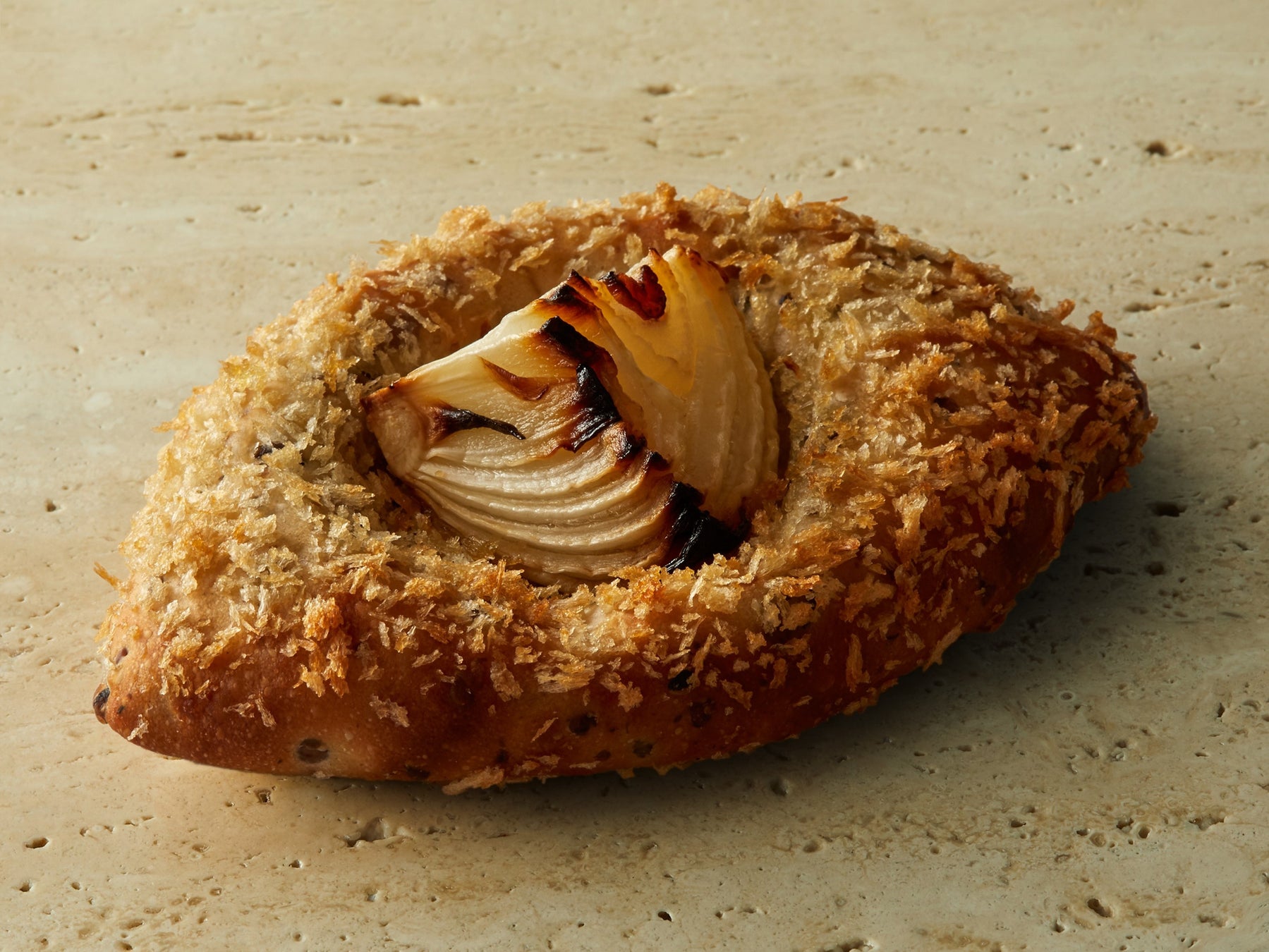 ごろっと玉ねぎをのせて焼き上げた、旨辛ビーフカレーパン。北海道産小麦「ゆめちから」の小麦粉を使用し、湯種製法で仕込んだもちっと感のある生地にビーフカレーを包みました。プラスプレの看板商品の一つである「鎌倉食パン」から作った自家製のパン粉を使用しています。大きめにカットしてのせた国産玉ねぎの甘みとカレーの旨みが味わえる一品です。