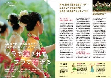 「心と体を整えるゆたかなハワイ」をテーマに、ハワイの伝統舞踊「フラ」の歴史や魅力についてご紹介。フラ界のカリスマ的存在カノエ・ミラーさんへのインタビュー記事も掲載。その他、ネイチャーウォーク、伝統食やスーパーフード、ロミロミなどハワイのライフスタイルを特集。