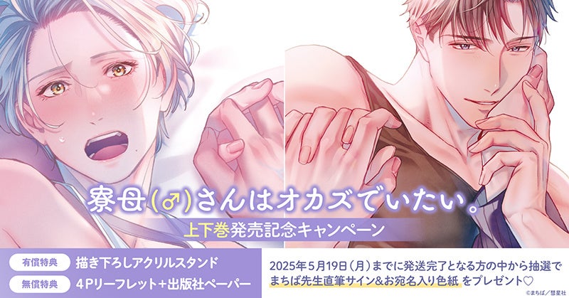 ホーリンラブブックスでは、まちば先生最新コミックス『寮母(♂)さんはオカズでいたい。』上下巻発売を記念して豪華キャンペーンを実施いたします!