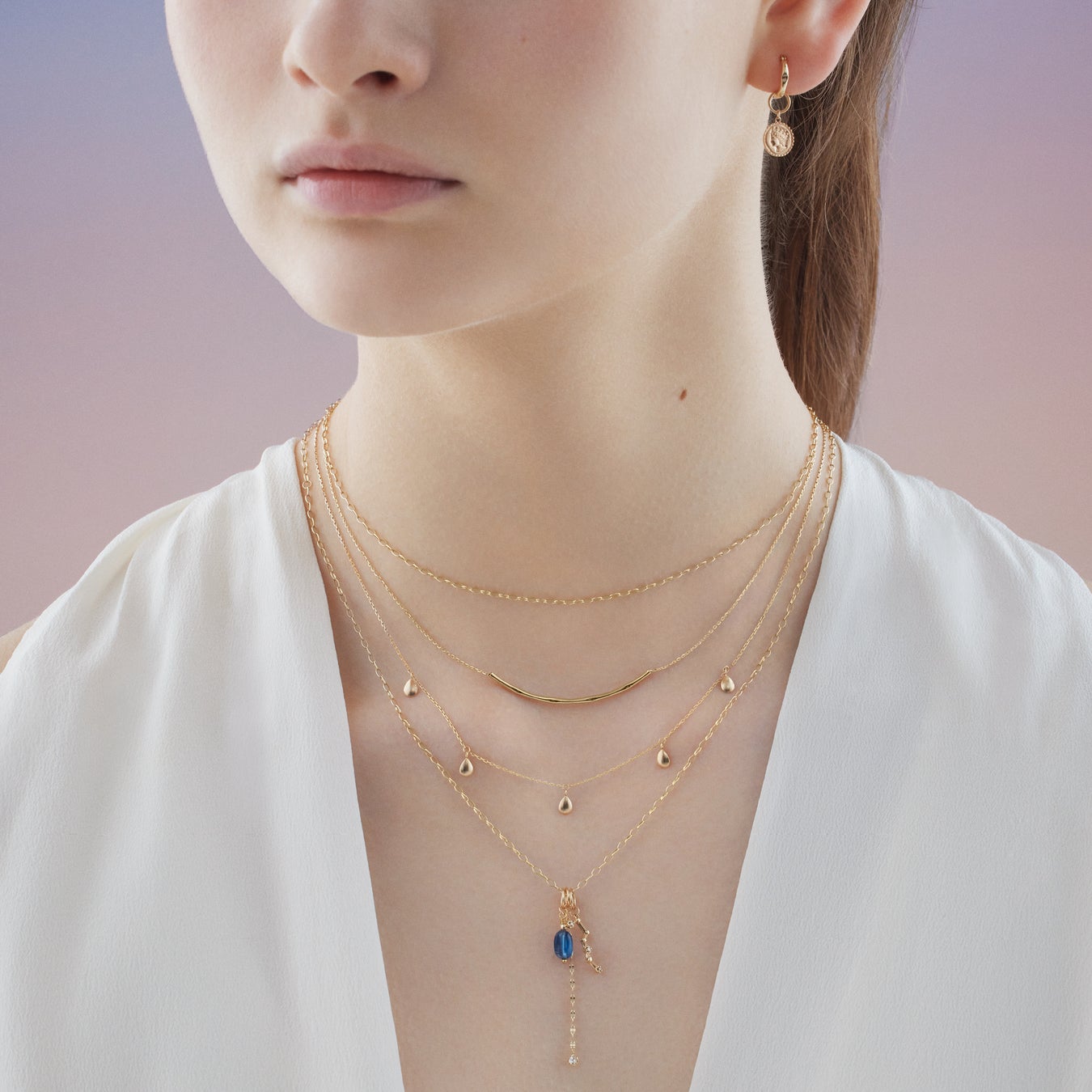 タイニーチャームとレイヤードして夏の首元に華やかさを演出。