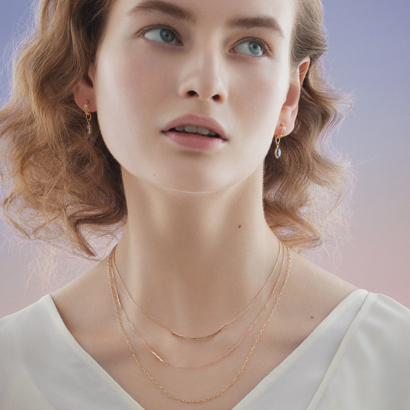 着け心地が軽やかな中空のブレスレットとネックレスは、スライドボール仕様なので、チョーカーのようにタイトに着けるトレンド感のある着けこなしがおすすめです。
