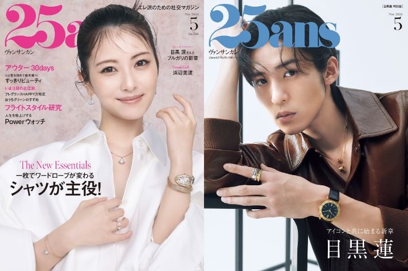 全世代のエレガントな女性たちに支持されるクラスマガジン『25ans(ヴァンサンカン)』(発行:株式会社ハースト婦人画報社、本社:東京都港区、代表取締役社長:ニコラ・フロケ)は、浜辺美波さんをカバーガールに迎えた5月号に加えて、目黒蓮さんが表紙を飾る特別版を2026年3月27日(金)に同時発売します。