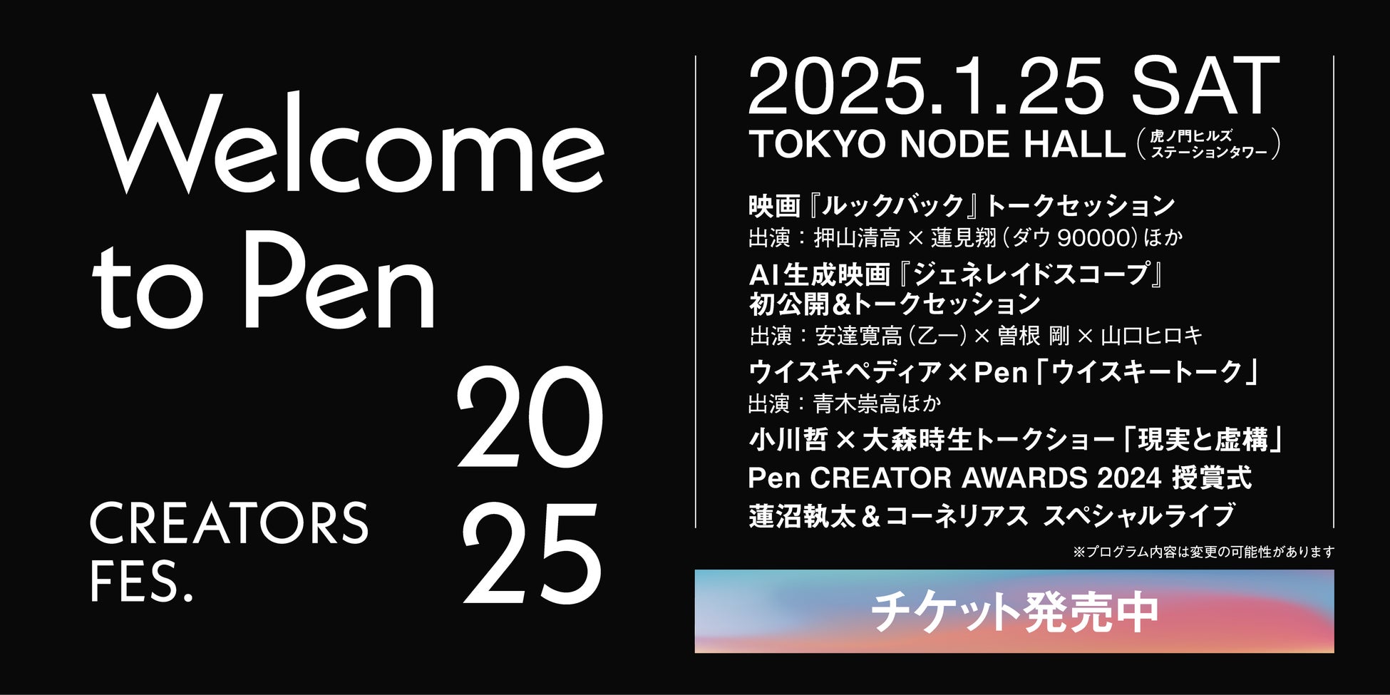 「Welcome to Pen 2025 CREATORS FES.」開催決定!特別な上映会、トークショー、音楽ライブなど心躍るエンターテインメントなイベントにぜひ、ご参加ください。