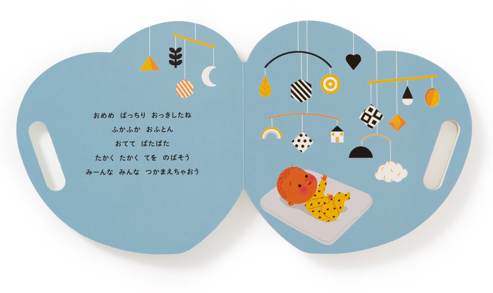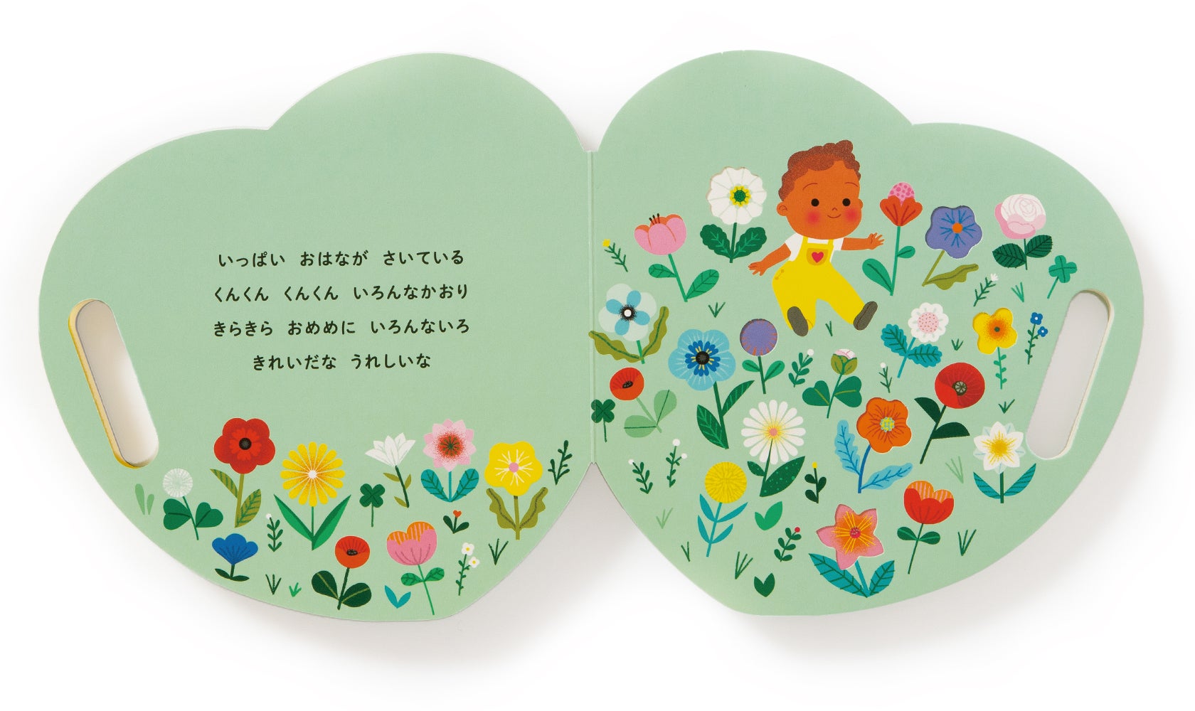 本の持ち手をにぎって動かすと、絵がカラフルに変化するしかけ絵本。本を振ると「シャカシャカ」と音がして、赤ちゃんの五感をやさしく刺激します。おはなしは、 子どもの成長を楽しみにするママの気持ちがあふれた内容で、読み聞かせにもぴったり。子守唄代わりにも使える、親子で笑顔になれる1冊です。ギフトブックとしてもおすすめです。