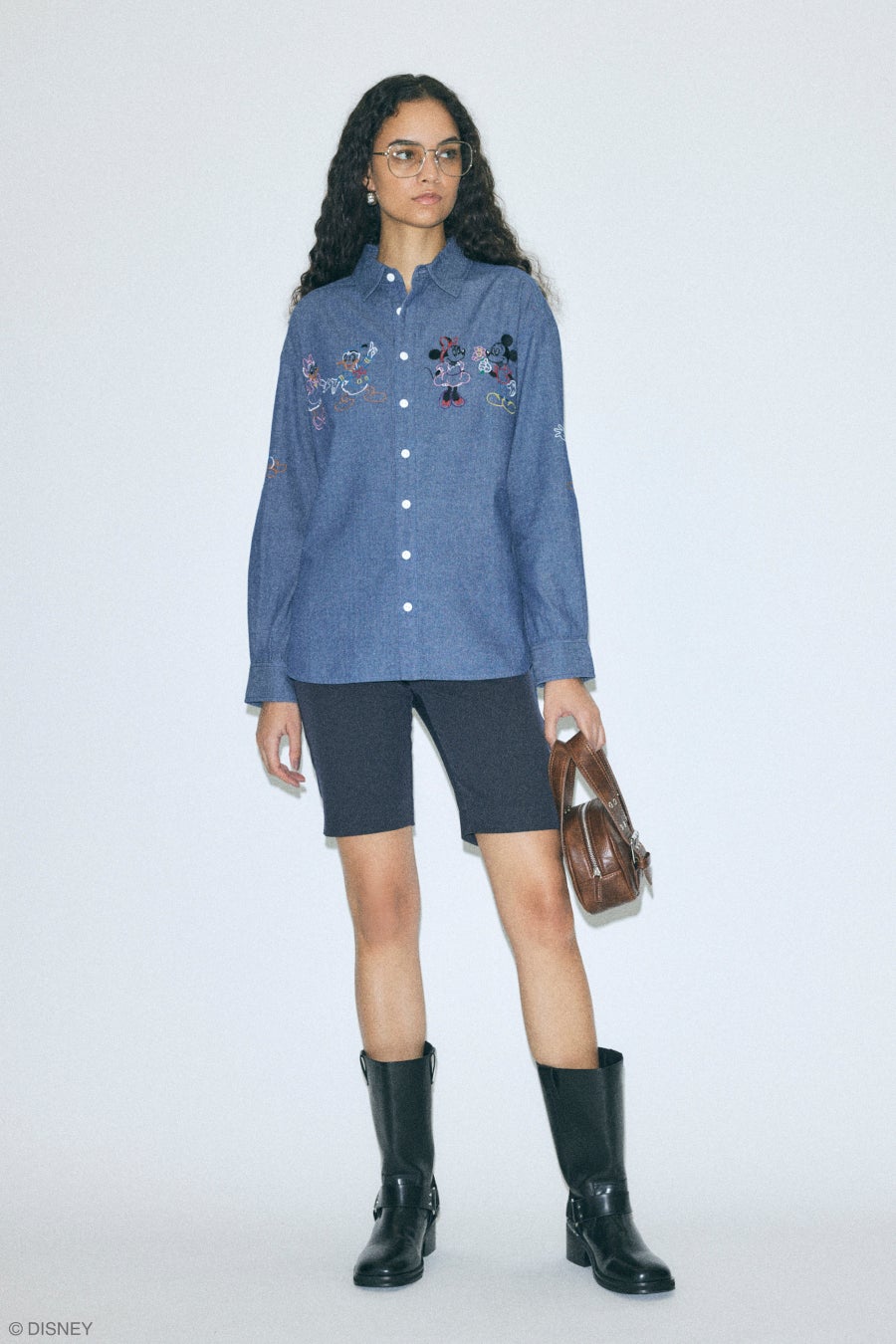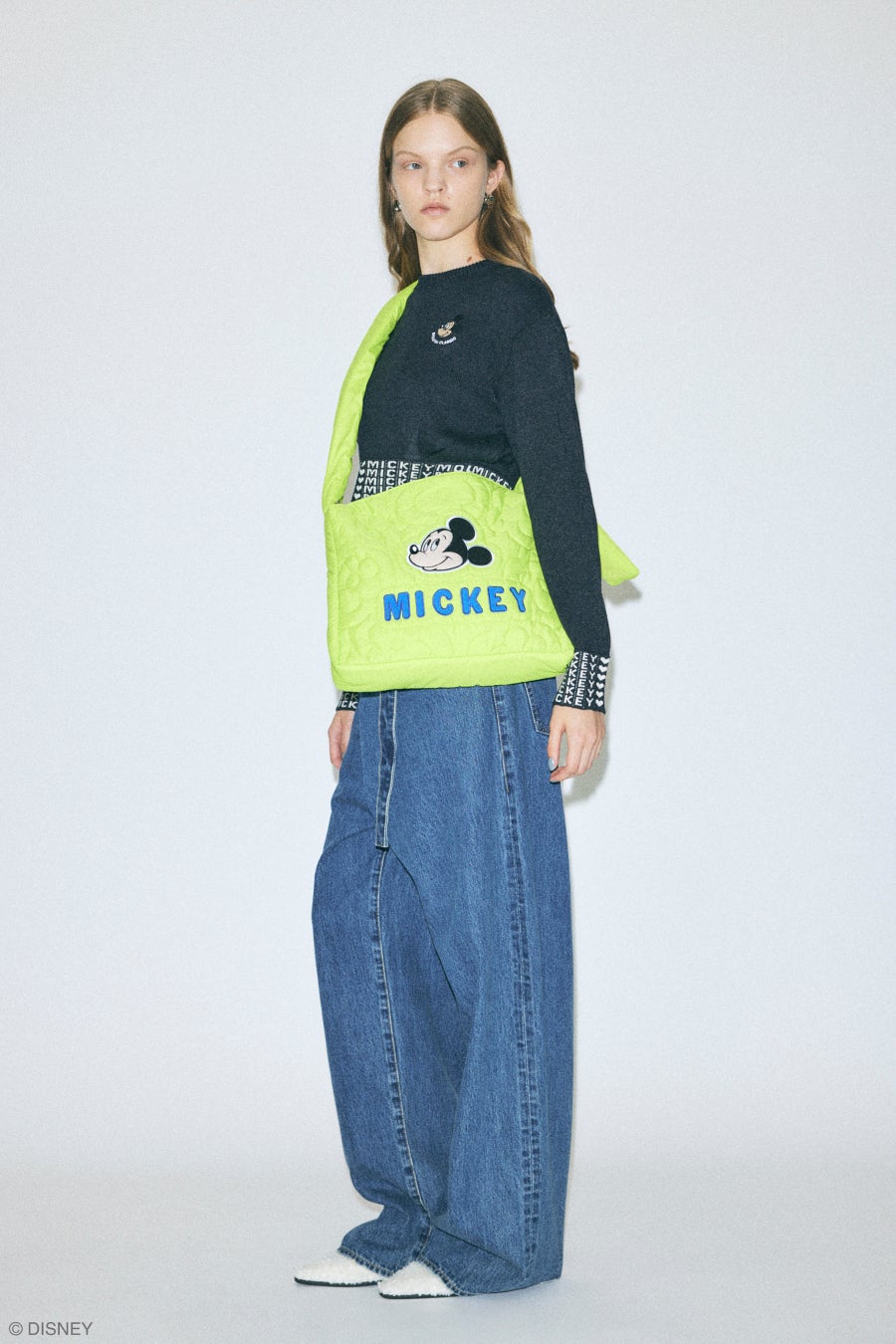 スタンダードキャラクターでは、「I ♡ You Lots」の発泡プリント文字とMICKEY MOUSE & MINNIE MOUSEが手刺繍風で表現され、アイコニックでカラフルな5色展開のユニセックスサイズクルースウェットを始め、デコレーションペンで描いた様に少しぷっくりとした立体感のある刺繍で細部にまで繊細に表現し、前後・両袖にたくさんのMICKEY & FRIENDSがデザインされたダンガリーシャツや花柄にMICKEY MOUSE & MINNIE MOUSEが溶け込んだカジュアルなフリルシャツ、MICKEY MOUSE総柄のワンピースやクラシックなデザインと袖配色が効いたロングスリーブ、キルティングショルダーバッグやMICKEY MOUSEのお顔のチョーカーなど、Disney SERIES CREATED by MOUSSYらしくひねりを効かせ、古着屋に並んでいそうで、でもどこにもない「あればいいな」を形にしたラインアップとなっています。