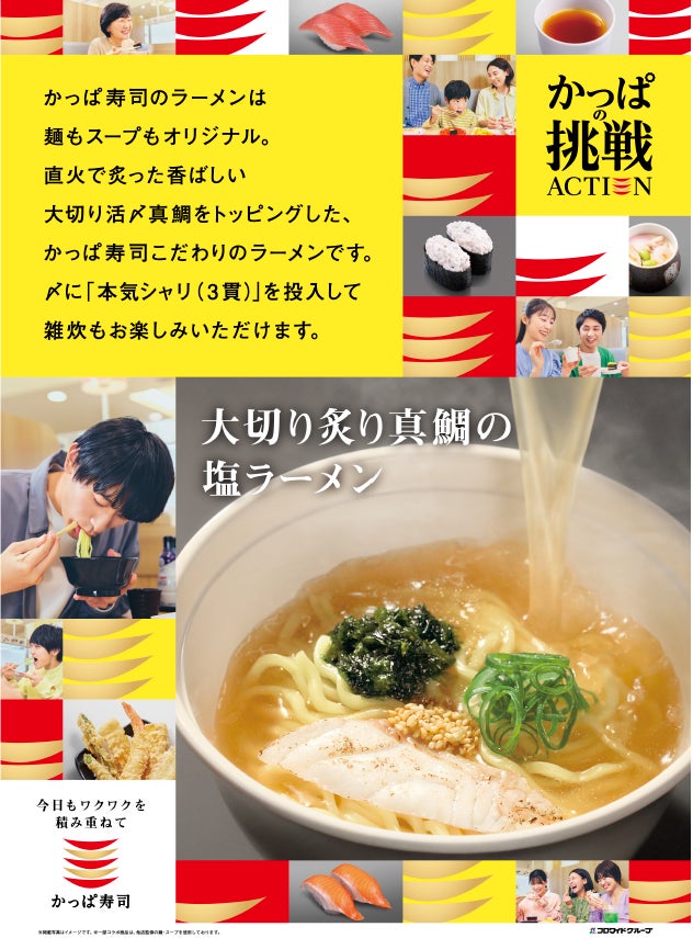 さらに、使用後のアラはフィッシュミールとして資源化するなど、環境にも配慮。お寿司と一緒に楽しめるかっぱ寿司ならではのラーメンです。