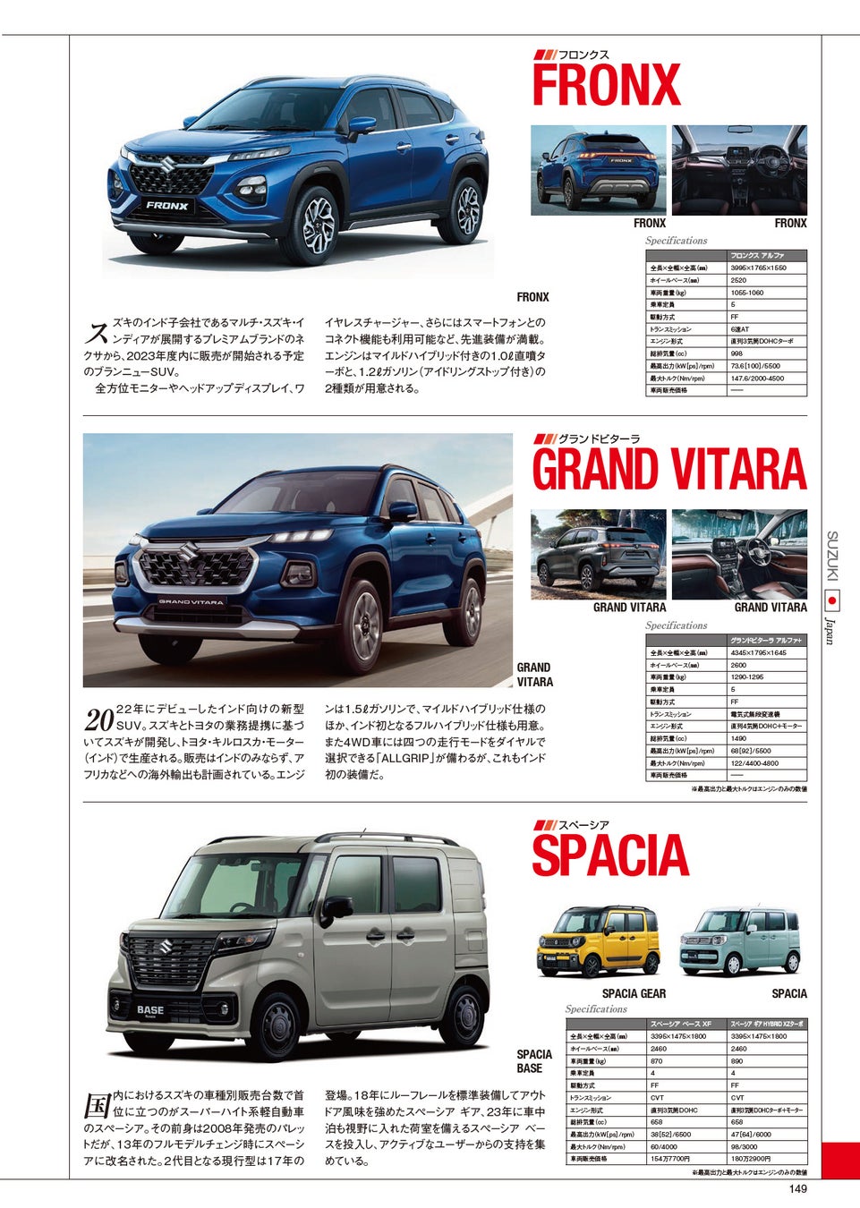 こちらはスズキの車種紹介ページ。フロンクスやグランドビターラといった日本では販売されていない海外専用モデルも網羅。例えば、「2022年にブレッツァが初のフルモデルチェンジを実施」というマニアックな情報までしっかり網羅しています。