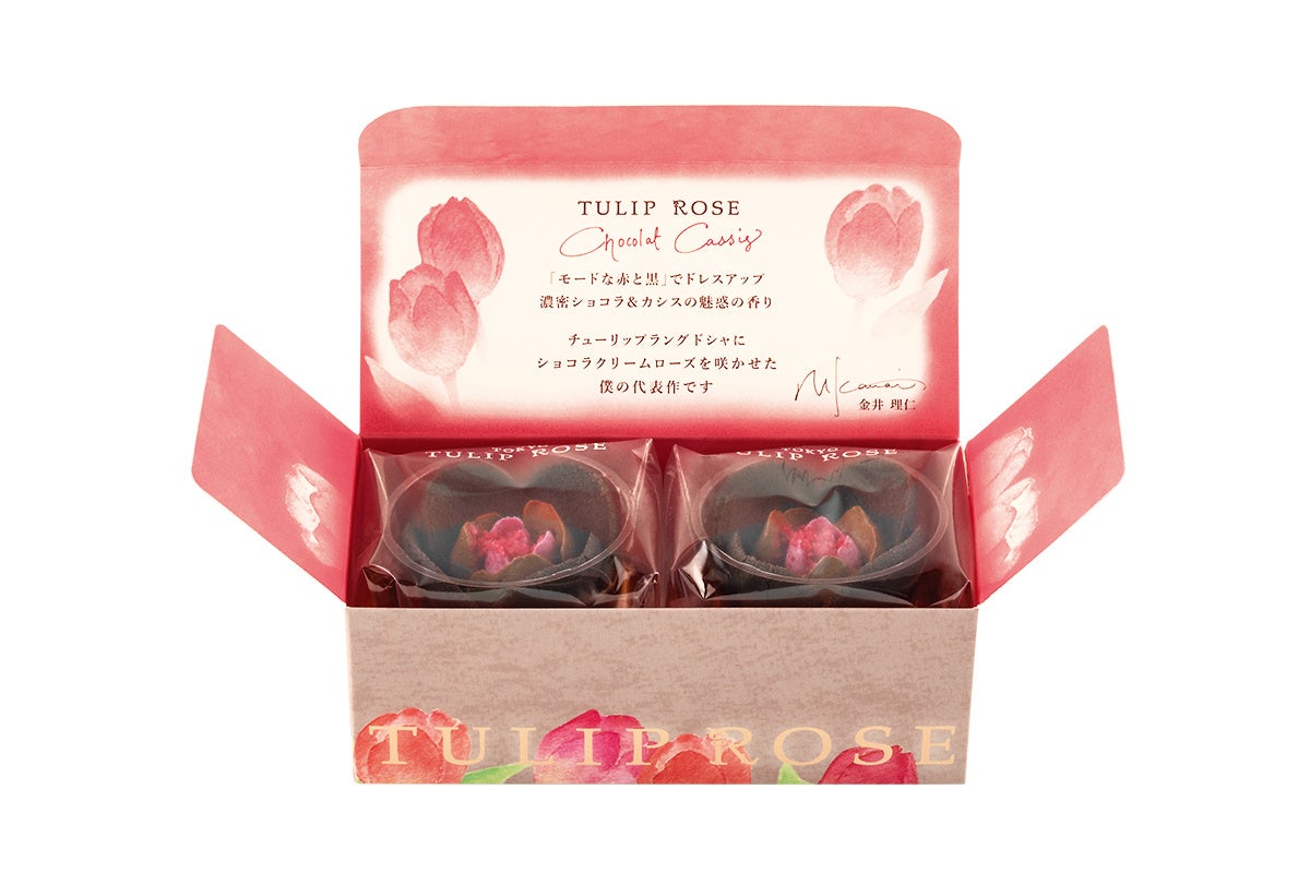 ブランド誕生から累計2,500万個以上を販売し、“可愛すぎるスイーツの花園”としてファンを魅了し続けるシェフ金井理仁の『TOKYOチューリップローズ』。代表作「チューリップローズ」は、「もう可愛いのひとこと」「周りはサクサク中はフワフワ、見た目に負けないおしゃれな味」「笑顔にならずにいられない」と発売からファンを虜にしてきました。そんな「チューリップローズ」から、2023年の新作が早速登場。<モードな赤と黒>がテーマの新たな代表作が誕生です。バレンタインシーズンの開幕を祝って、とびきりオシャレにドレスアップしたチューリップローズをぜひチェックして!
