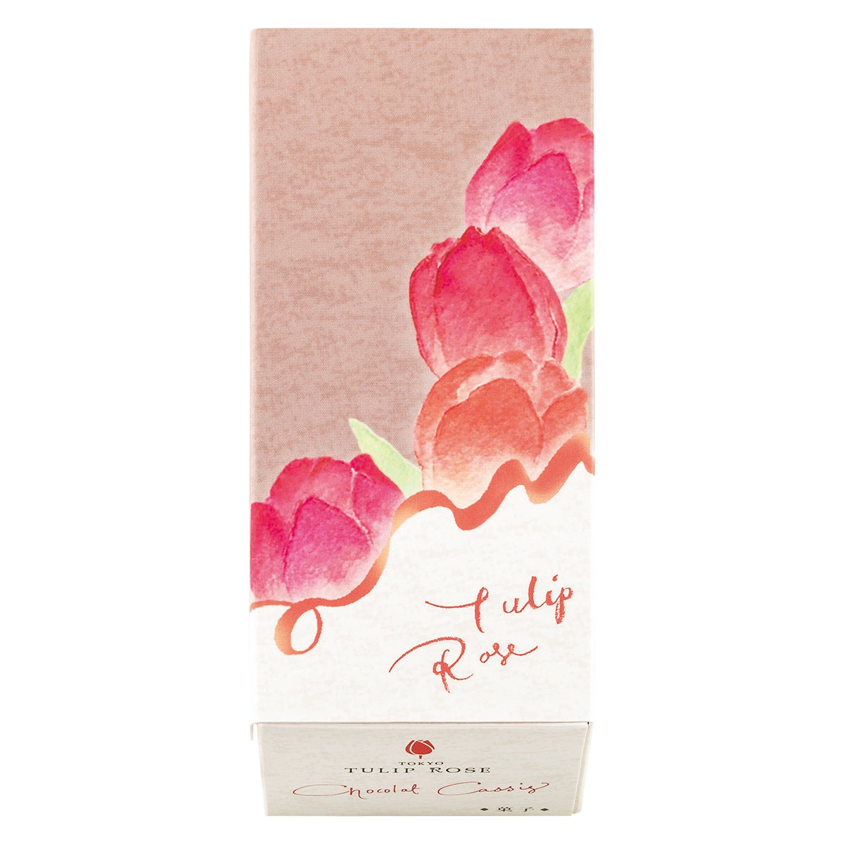 『チューリップローズ ショコラカシス』のためにデザインされた、優雅なパッケージ。落ち着いたベージュトーンに、華やかなピンク色が目をひきます。グラデーションが美しいチューリップのイラストに、思わず引き込まれてしまいそうな雰囲気です。キュートな2個入と、四つ葉のような形が可愛すぎる4個入の2サイズ。プレゼントや頑張る自分へのご褒美はもちろん、バレンタインギフトにピッタリです。