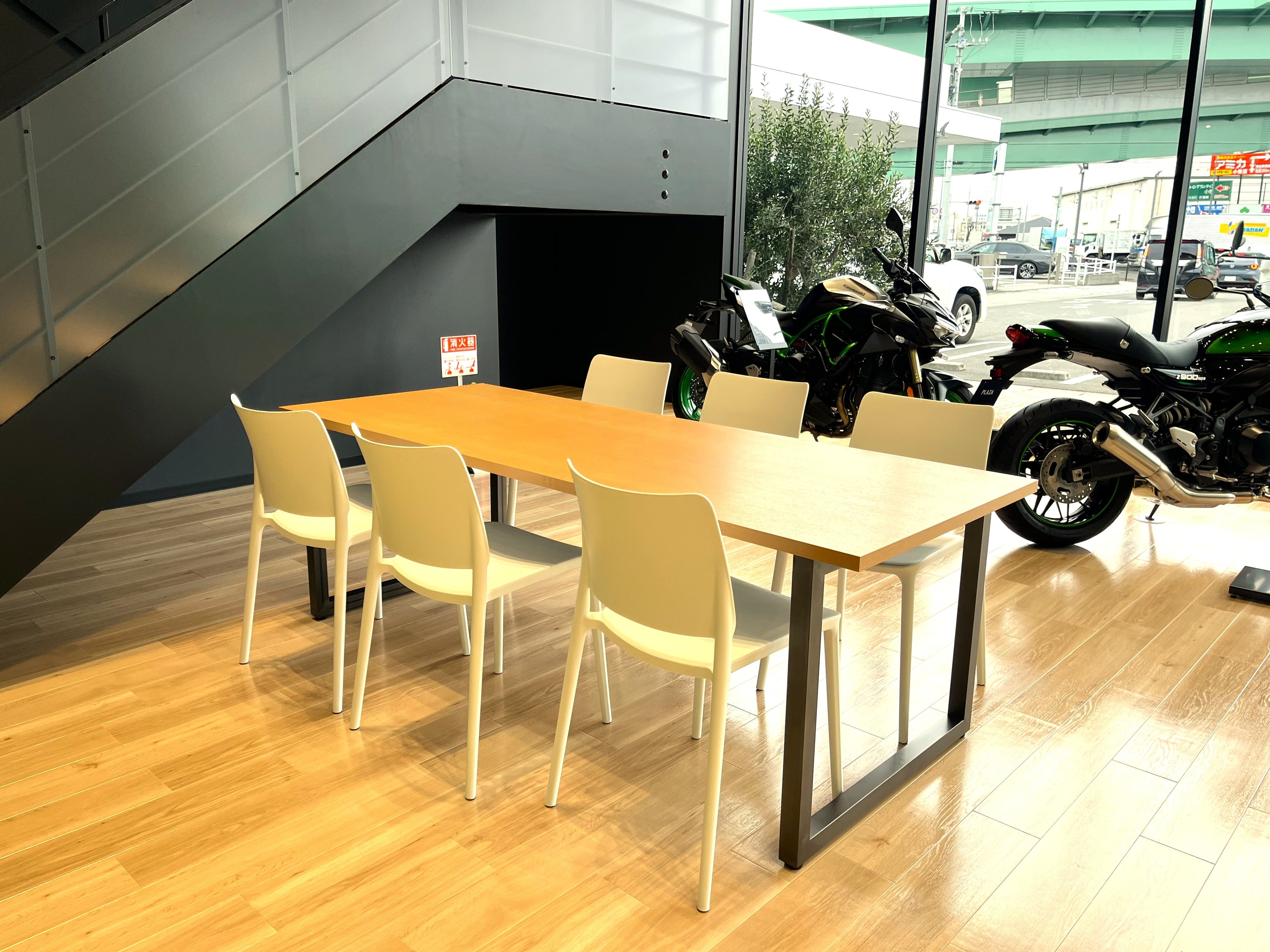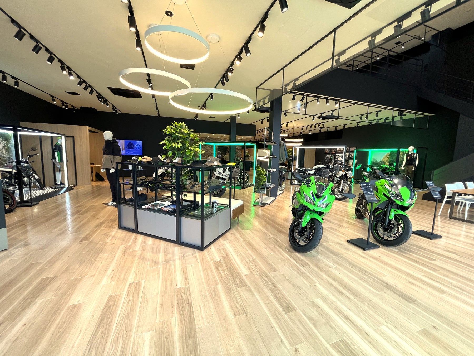 国道41号線沿いショッピングセンターにある「カワサキ プラザ小牧」がリニューアル!ウッディな明るい店内に生まれ変わった大型ショールームに話題の車両を数多く展示しています。
