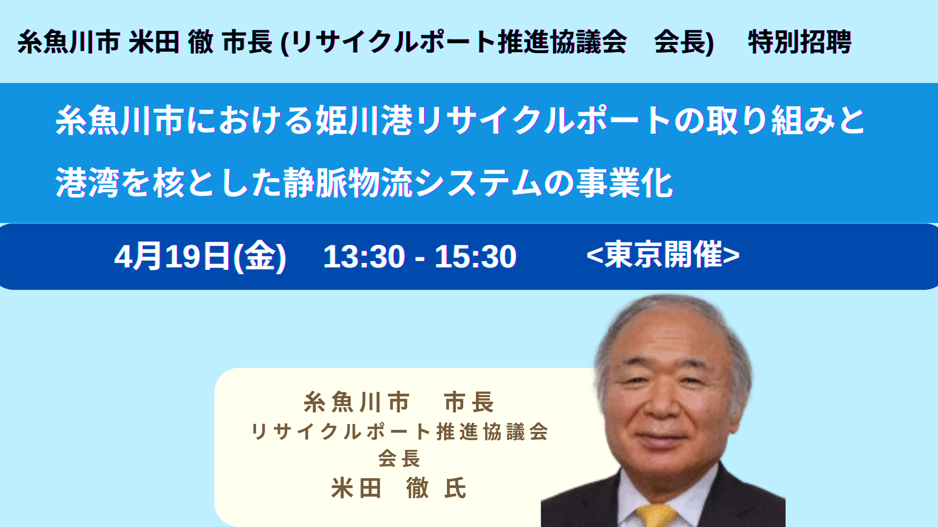 【JPIセミナー】糸魚川市「姫川港リサイクルポートの取り組みと港湾を核とした静脈物流システムの事業化」4月19日(金)<東京開催>