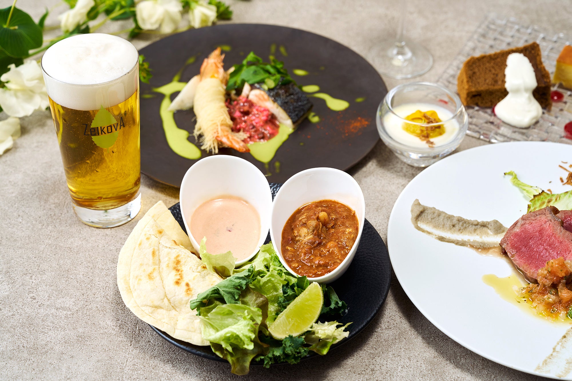 Cafe & Dining ZelkovAでは、ニューヨークのような雰囲気の中で、春の味覚に加え、ZelkovAで人気の自分好みに作って食べるアレンジタコスなど楽しさも詰め込んだ料理をフリーフロードリンクとともにお届け。コースはお好みに合わせてお選びいただけるプレミアム、スタンダード、カジュアルの3種類をご用意。新緑へ移ろうオープンエアな心地よいテラス席は、貸切でのテラスパーティーも叶います。さらに、最大14名の個室エリアや店内貸切も承っており、女子会やご友人、ご家族のお集まりなど少人数から大人数まで様々なシーンを彩ります。オプションでは、彩り豊かなデザート&フルーツアソートをブーケに見立てたフォトジェニックなサプライズプレートもご用意でき、卒業などのお祝いを盛大に演出いたします。
