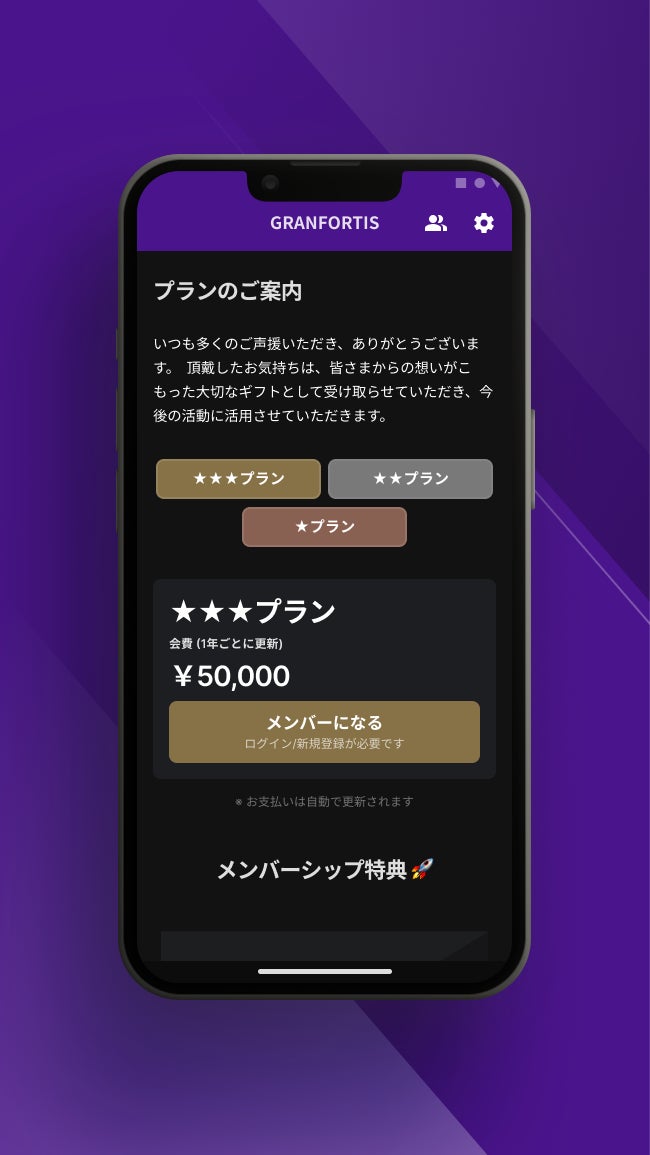 おかげさまでクラブ設立10年目を迎えました。これまで本当にたくさんの方々に支えられ前進を続けてきましたが、 アプリを通じて更にグランフォルティス沖縄を身近に感じてもらい、 気軽に交流を図りたいという想いから今回の導入に至りました。 グランフォルティス沖縄を通して世代を超えた触れ合いの輪を広げ、 いつまでも“グラン”を楽しんでもらいたいと思います。