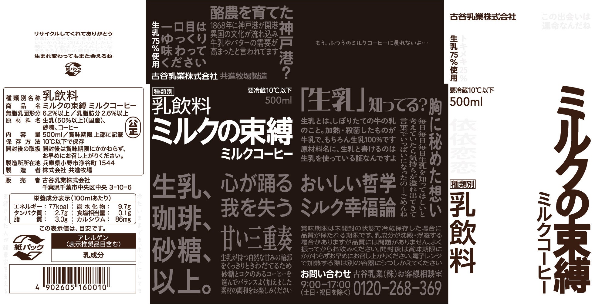 古谷乳業は、「日々搾られる生乳を、無駄にせず、美味しく届ける」という想いをもって商品づくりに取り組んでおり、『ミルクの束縛』は美味しさの追求と社会的な意義の両立を目指し、酪農家と消費者をつなぐ架け橋として誕生しました。挑戦的なネーミングやパッケージデザインの奥には「国産生乳の美味しさをまっすぐに伝えたい」という、誠実な願いが込められています。