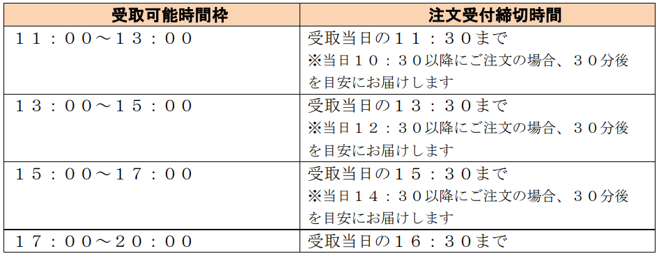 受取時間枠を指定のうえ、注文ができます。