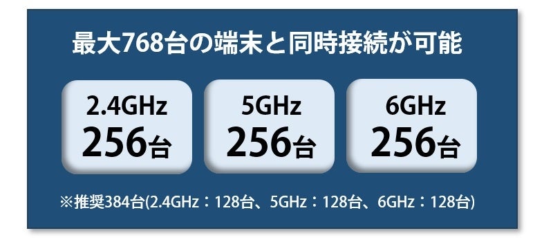 ※推奨384台(2.4GHz:128台、5GHz:128台、6GHz:128台)