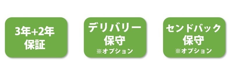有償でのデリバリー保守(1年/3年/5年)、センドバック保守(延長1年/2年)にも対応。長期間、企業ユースで安心してご使用いただけます。