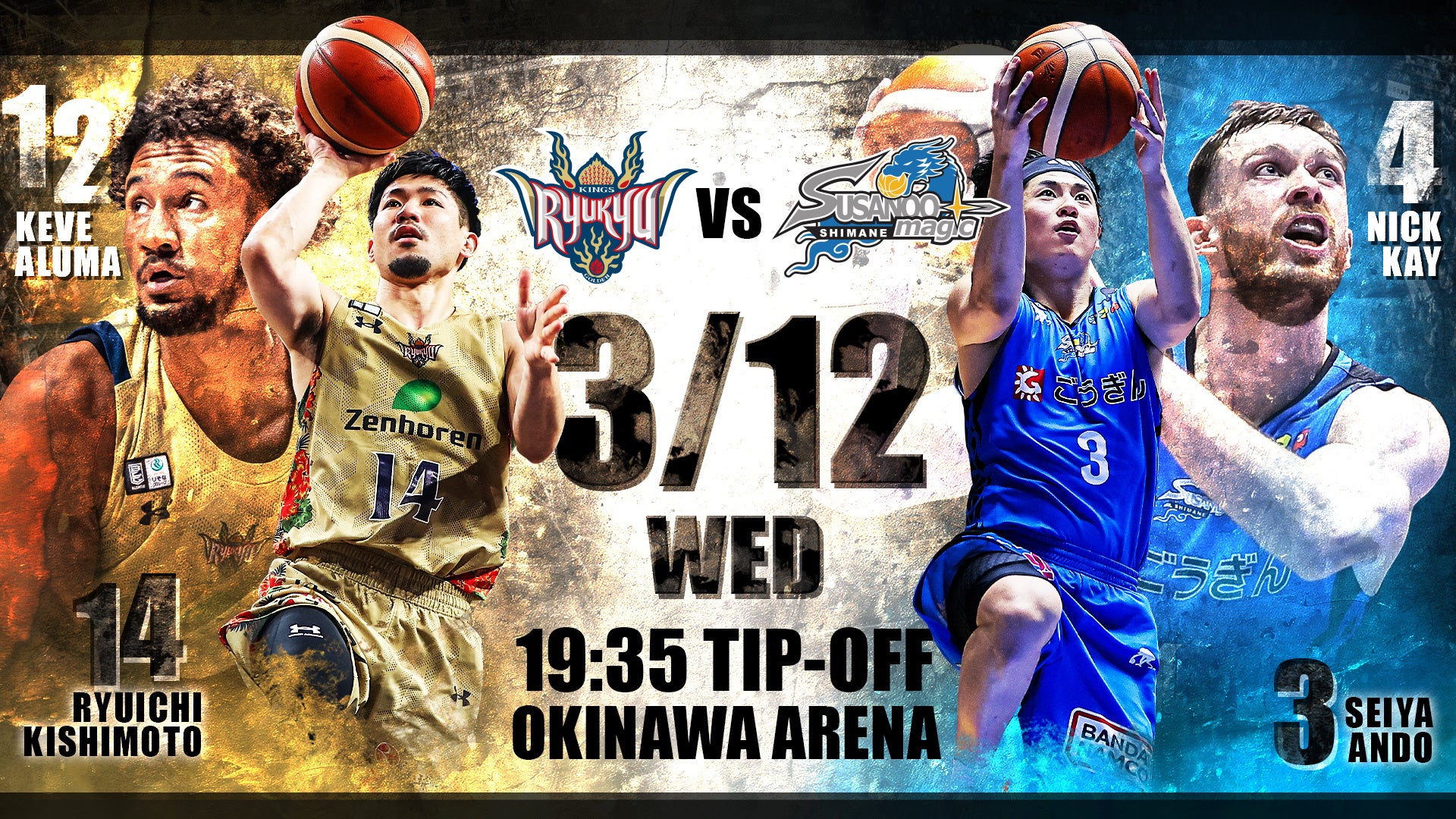 さらに、3月のホームゲームも同じく3試合。西地区のライバル島根スサノオマジックとの一戦や、爆発力のあるオフェンスが武器の群馬クレインサンダーズと対戦します。 シーズン後半戦も、沖縄アリーナでキングスへの応援をよろしくお願いします。